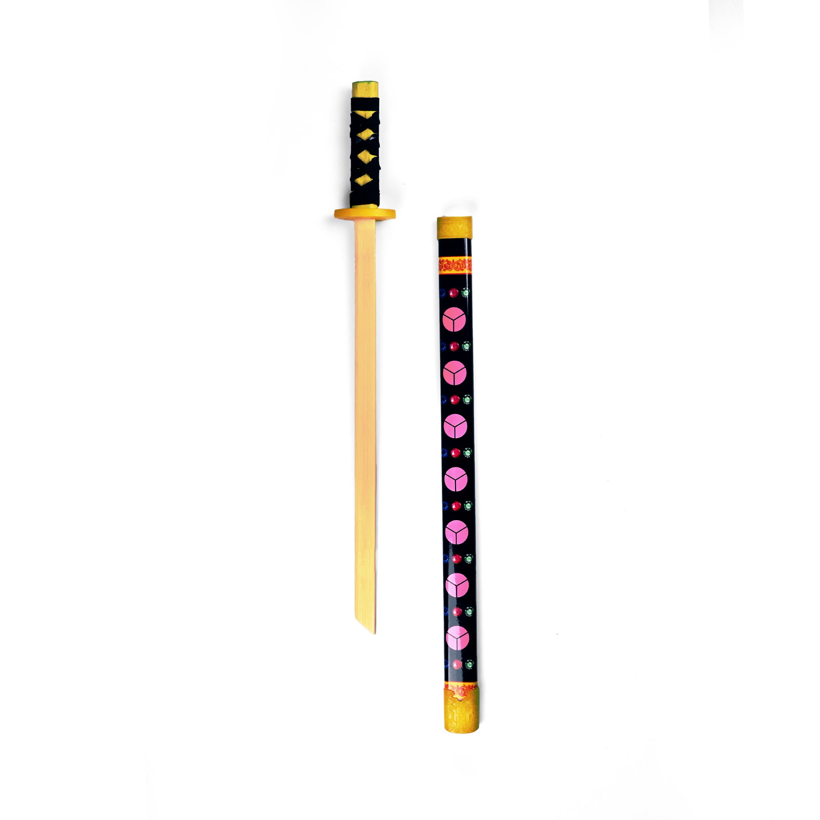 Odkryj ducha samuraja z tą wyjątkową repliką katanę z drewna. Mając 55 cm długości, ten kolekcjonerski przedmiot jest mistrzowskim połączeniem tradycji i popkultury, dostosowanym do miłośników anime oraz tych, którzy doceniają sztukę japońskiego rzemiosła. Drewniana struktura oferuje trwałość i realistyczny wygląd, jednocześnie zapewniając bezpieczeństwo podczas zabawy w pojedynki i odtwarzanie ulubionych bitew z anime. Ta katana to nie tylko zabawka; to element dekoracyjny, który dodaje japońskiego szyku do każdego wnętrza. Niezależnie od tego, czy jest zamontowana na ścianie czy wystawiona na stojaku, stanowi fascynujący element centralny, który opowiada historie o przygodach i męstwie. Czarne i złote detale na rękojeści w połączeniu z jaskrawoczerwoną pochwą podnoszą jej walory wizualne, czyniąc ją wyrazistym 'japońskim suwenirem' i 'kolekcjonerskim samurajem'. W porównaniu z innymi, ta drewniana katana wyróżnia się starannością wykonania i uwagą na kulturową autentyczność. Każdy egzemplarz odzwierciedla zaangażowanie w jakość, co czyni go wyjątkowym dodatkiem do każdej kolekcji artefaktów kulturowych lub pamiątek z anime. Zaprosić tę drewnianą katanę do swojego przestrzeni i pozwól jej przenieść Cię do świata starożytnej czci i nowoczesnej fantazji. Rozpocznij swoją kolekcję lub podaruj ją innemu entuzjaście — ta katana to skarb, który przenosi ducha samuraja prosto do serca Twojego domu.