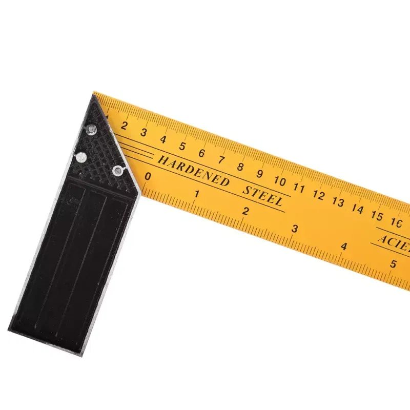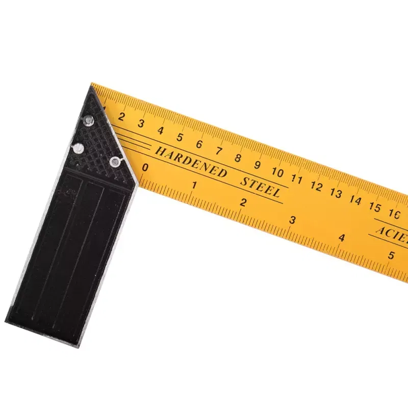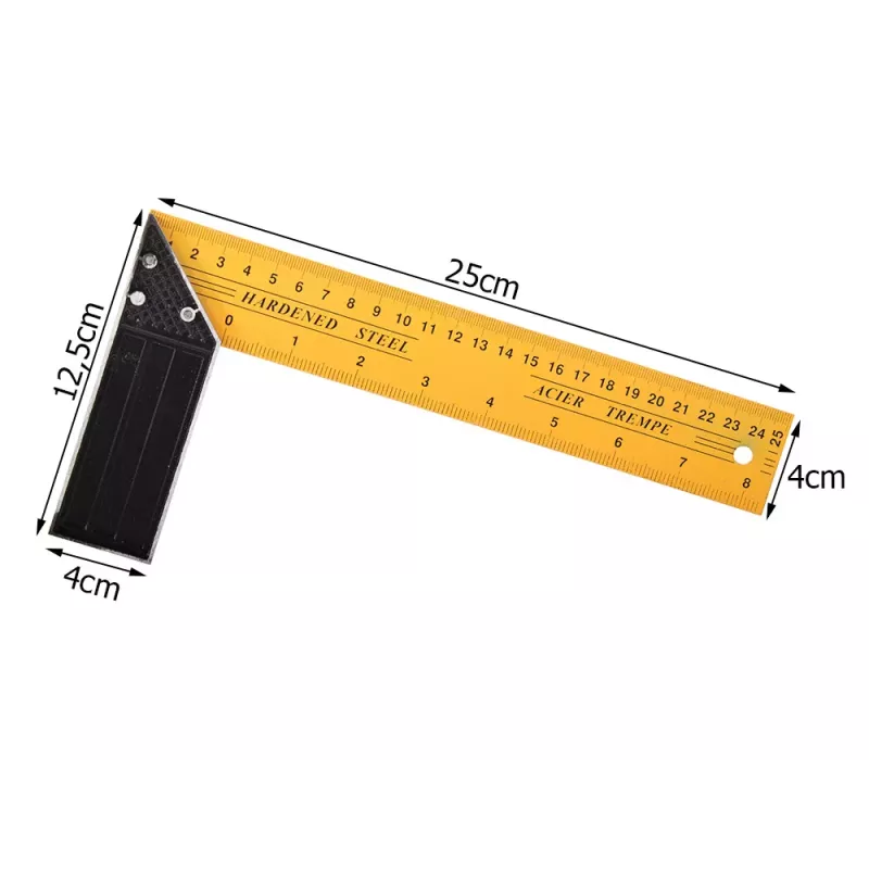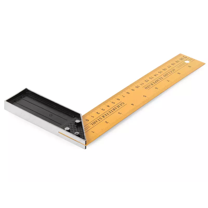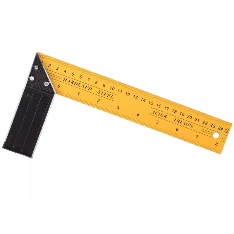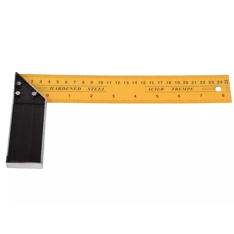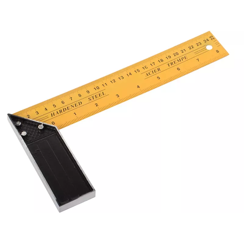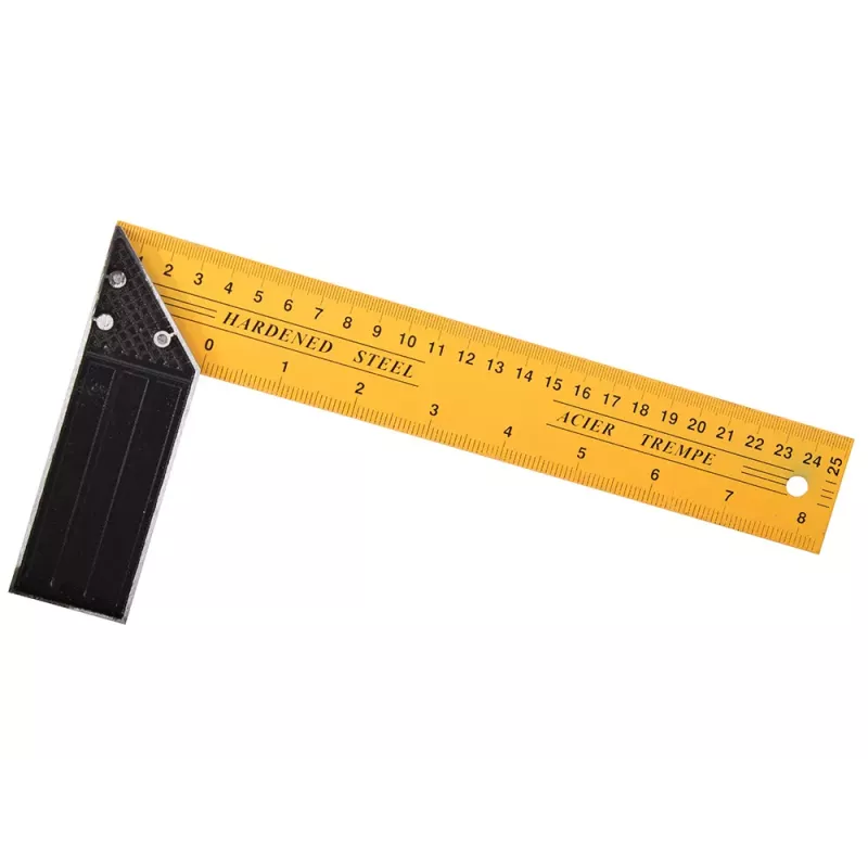 Kątownik bardzo przydatny podczas prac budowlanych, remontowych, stolarskich. Dokładnie odmierzy kąt prosty pod względem płaszczyzny. Długość możemy odmierzać zarówno w centymetrach jak i w calach. Kątownik posiada podziałkę z obu stron.