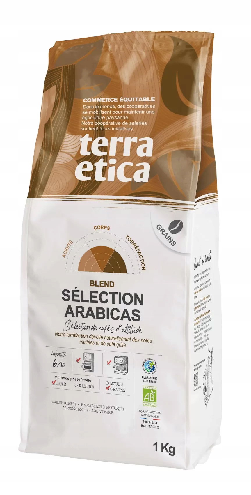 Ekologiczna mieszanka kaw arabica, pozyskiwana zgodnie z zasadami Fair Trade. Tradycyjna metoda palenia wydobywa słodowe i prażone aromaty smakowe. Pakowano w atmosferze ochronnej.