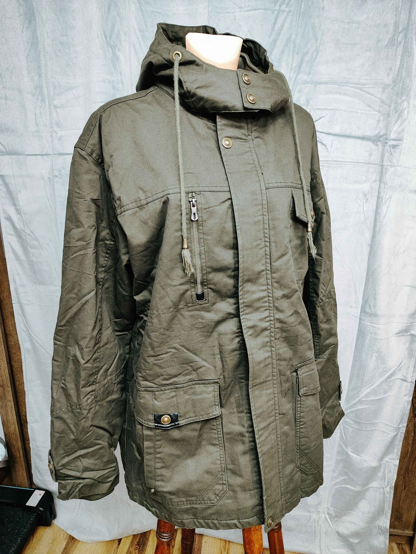 Ciepła damska kurtka zimowa w stylu militarnym — praktyczna i wygodna na chłodne dni. Grubszy materiał + polarowa podszewka dobrze izolują ciepło, a klasyczny krój pasuje zarówno do codziennych stylizacji, jak i wyjść outdoorowych.