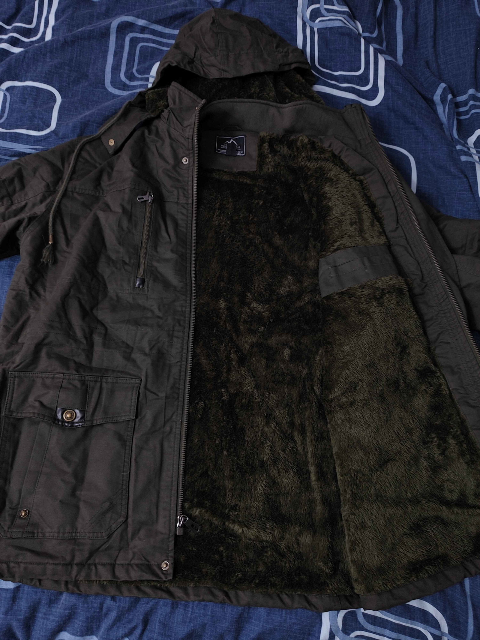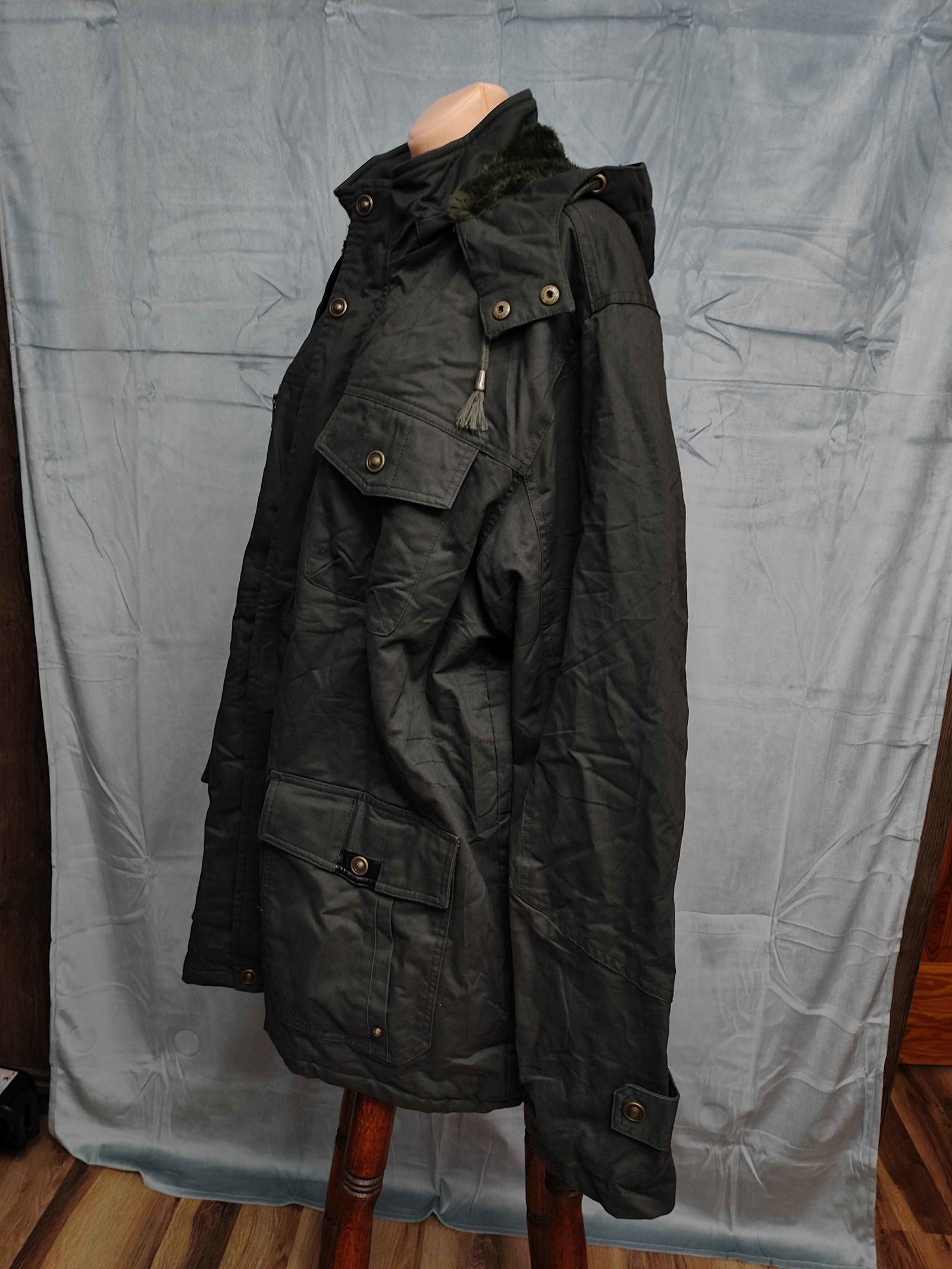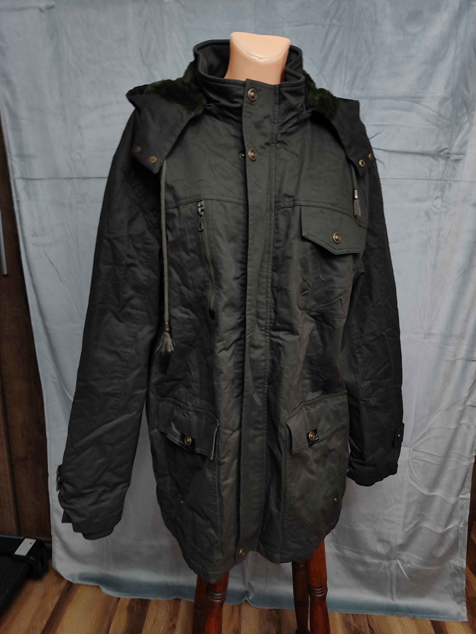 Kurtka zimowa w stylu militarnym - praktyczna i wygodna na chłodne dni. Grubszy materiał + polarowa podszewka dobrze izolują ciepło. zapięcie jest na suwak + zatrzaski Ma 5 funkcjonalnych kieszeni