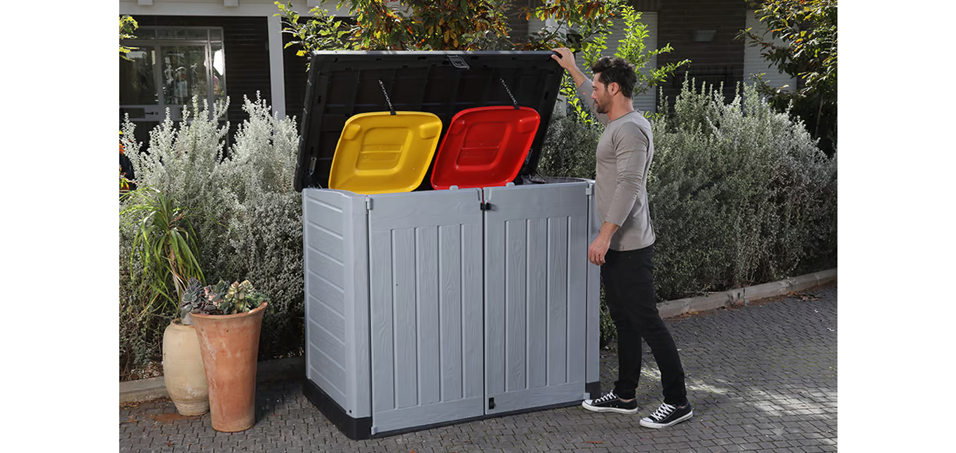 Może pomieścić 2 pojemniki o pojemności 240 litrów