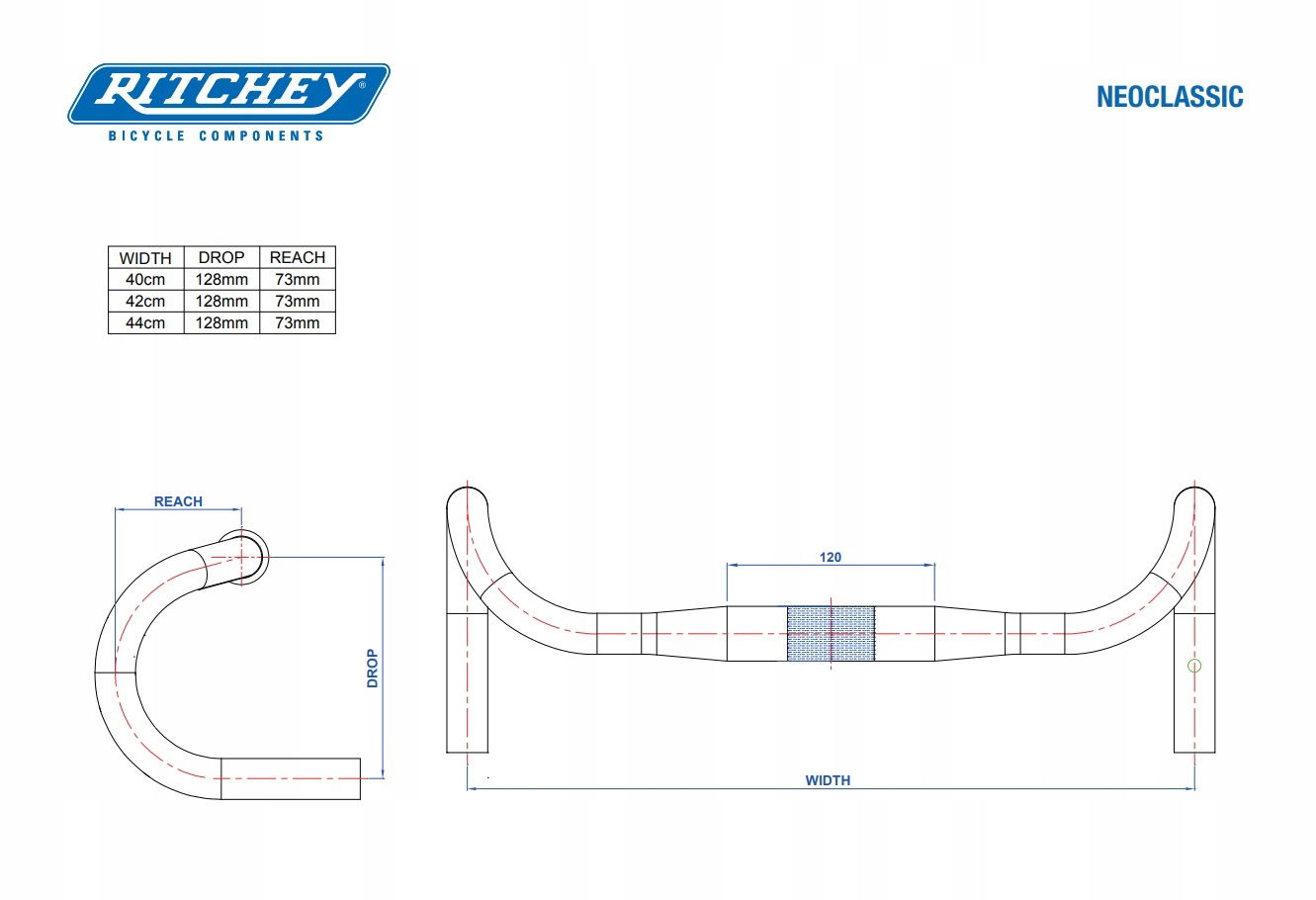 Zmodernizowana wersja ponadczasowego wygięcia kierownicy Ritchey, NeoClassic posiada tradycyjne okrągłe dno, preferowane przez wielu mistrzów Tour de France i klasyków, teraz z krótszym zasięgiem i płytszym dnem.