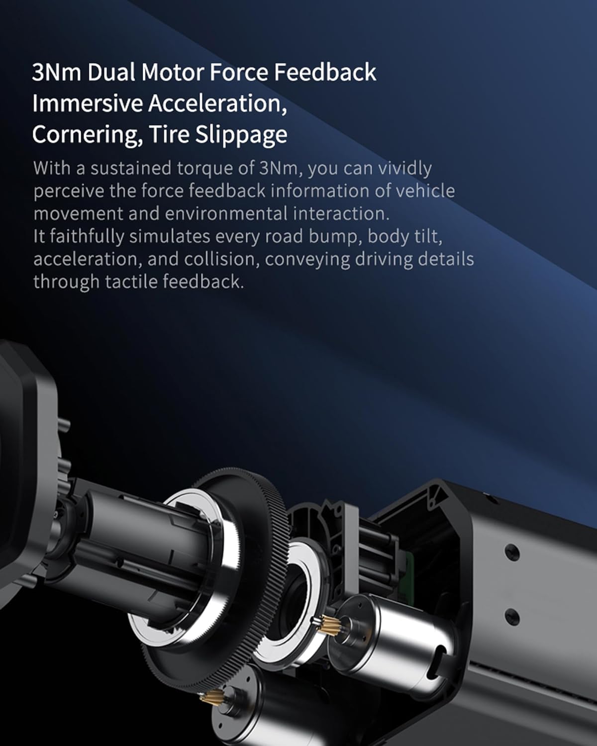 - Waga: 1338 g (kierownica); 2324 g (podstawa); 2086 g (panel z 3 pedałami); (dźwignia zmiany biegów)