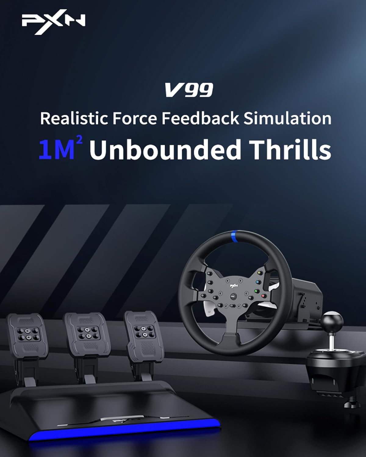 Z PXN-V99 poczujesz się jak za kierownicą prawdziwego samochodu. W skład zestawu wchodzą 3 pedały, które wyróżniają się wysoką czułością i responsywnością, dzięki czemu możesz cieszyć się realistycznym doświadczeniem hamowania czy przyspieszania. Otrzymujesz także wygodną w użyciu skrzynię biegów z 6 biegami i biegiem wstecznym. Wszystko to zapewni Ci jeszcze większą immersję!