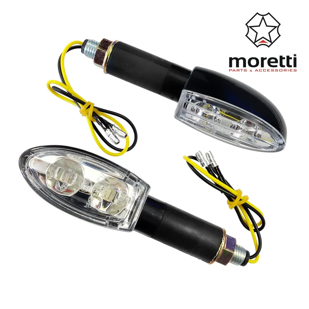 Nowoczesna stylistyka i wysoka jakość kierunkowskazów Moretti pozwala w pełni podkreślić charakter każdego pojazdu. Z powodzeniem można stosować je w motocyklach i quadach. Ich uniwersalność daje możliwość montażu zarówno z przodu jak i z tyłu pojazdu. Wysoka wydajność świateł LED gwarantuje bezpieczeństwo dzięki bardzo dobrej widoczności przy minimalnym zużyciu energii, a uzyskany certyfikat E pozwala bez obaw poruszać się w ruchu drogowym.