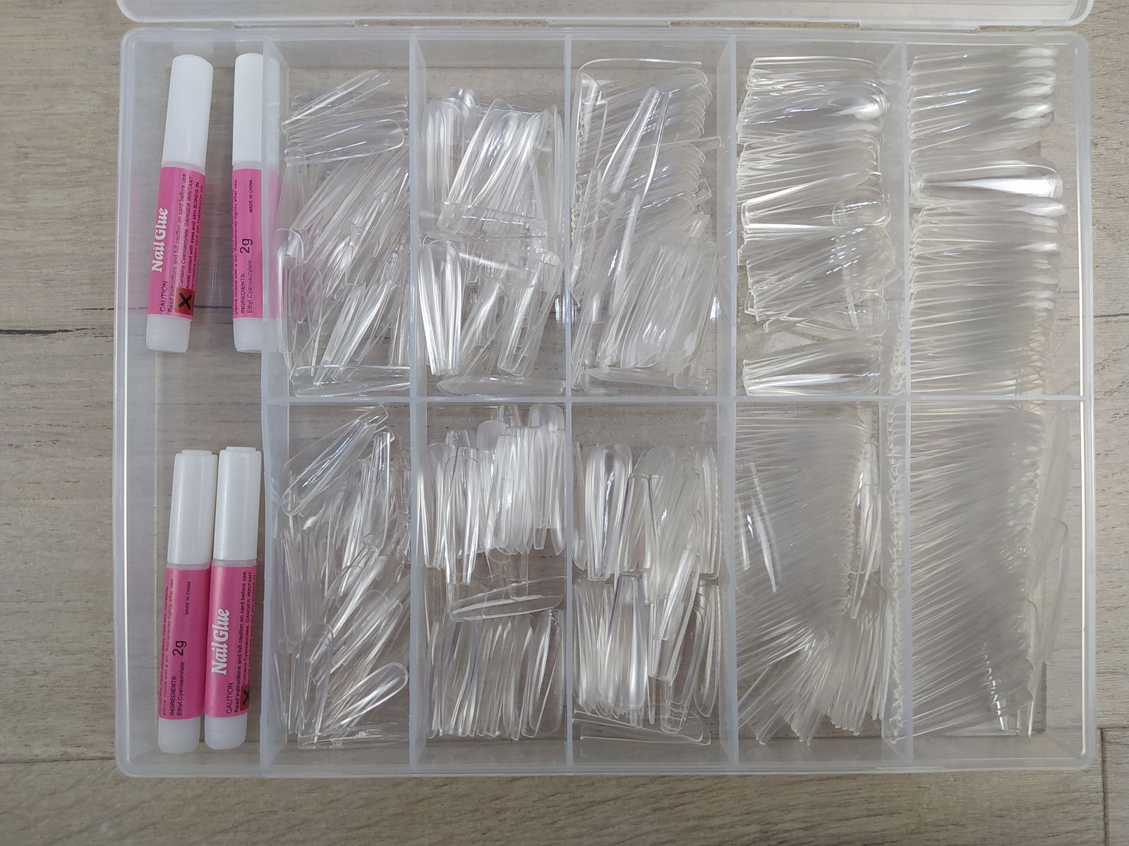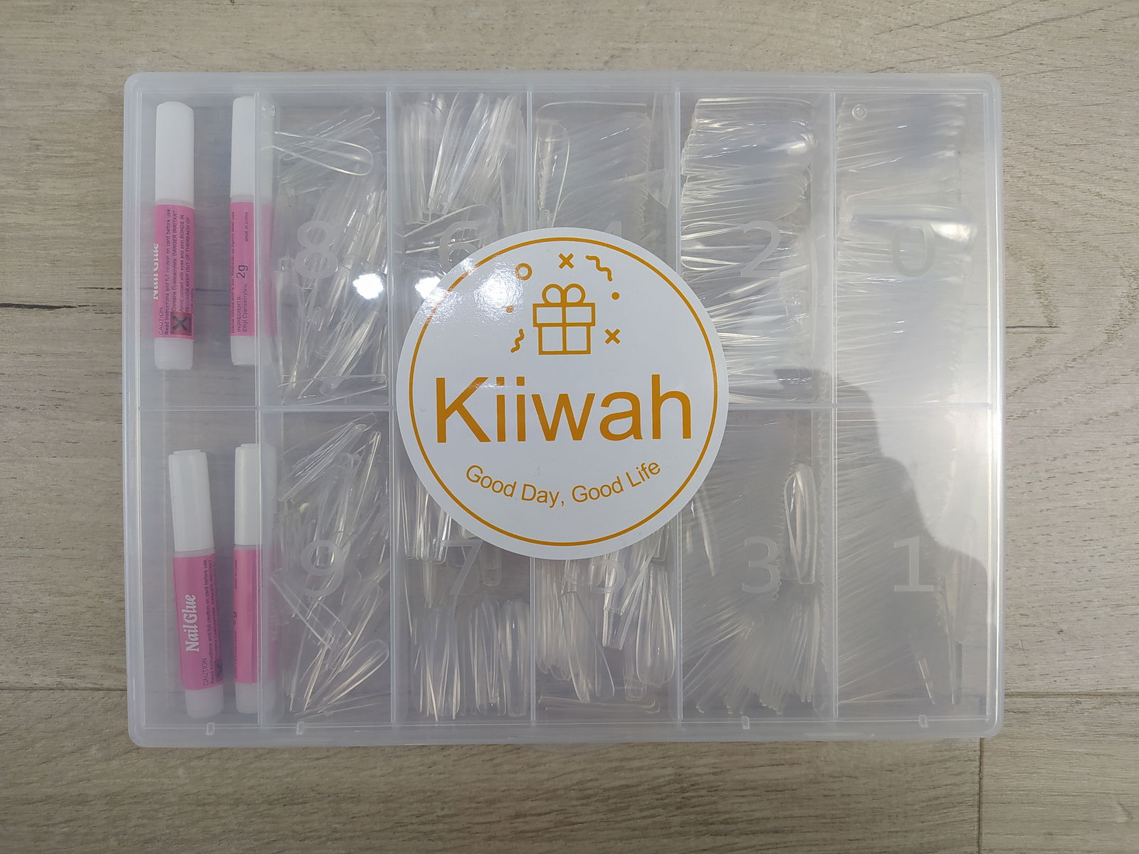 Kiiwah Sztuczne paznokcie Tipsy przezroczyste 500 sztuk + klej