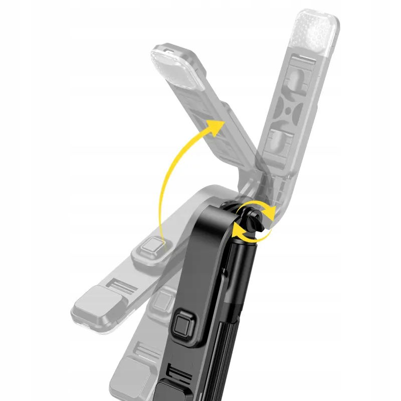 ✅ Nie tylko jest to uchwyt do selfie, ale również praktyczny statyw. Idealny do video rozmów i zdalnego fotografowania za pomocą pilota w zestawie. Unikalna możliwość rozłożenia nóżek gwarantuje stabilność podczas rozmów na Skype, FaceTime i innych platformach.