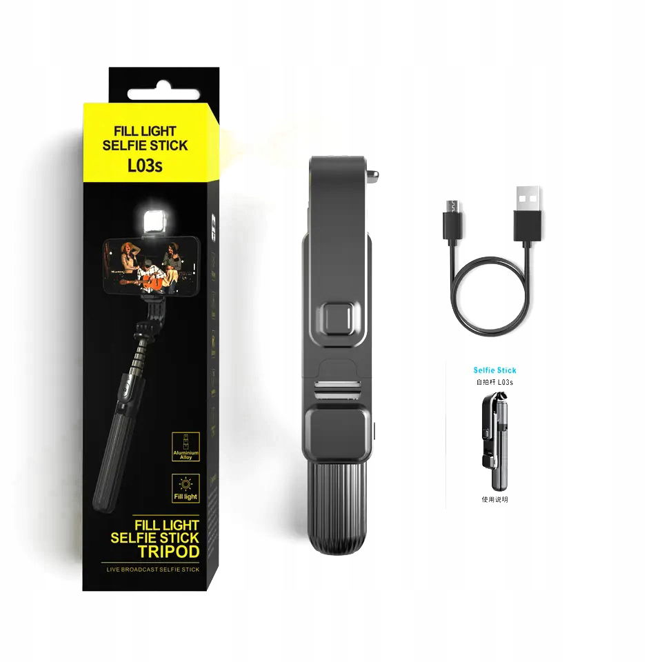 Kijek selfie stick L03S z tripodem statyw + latarka biały bluetooth