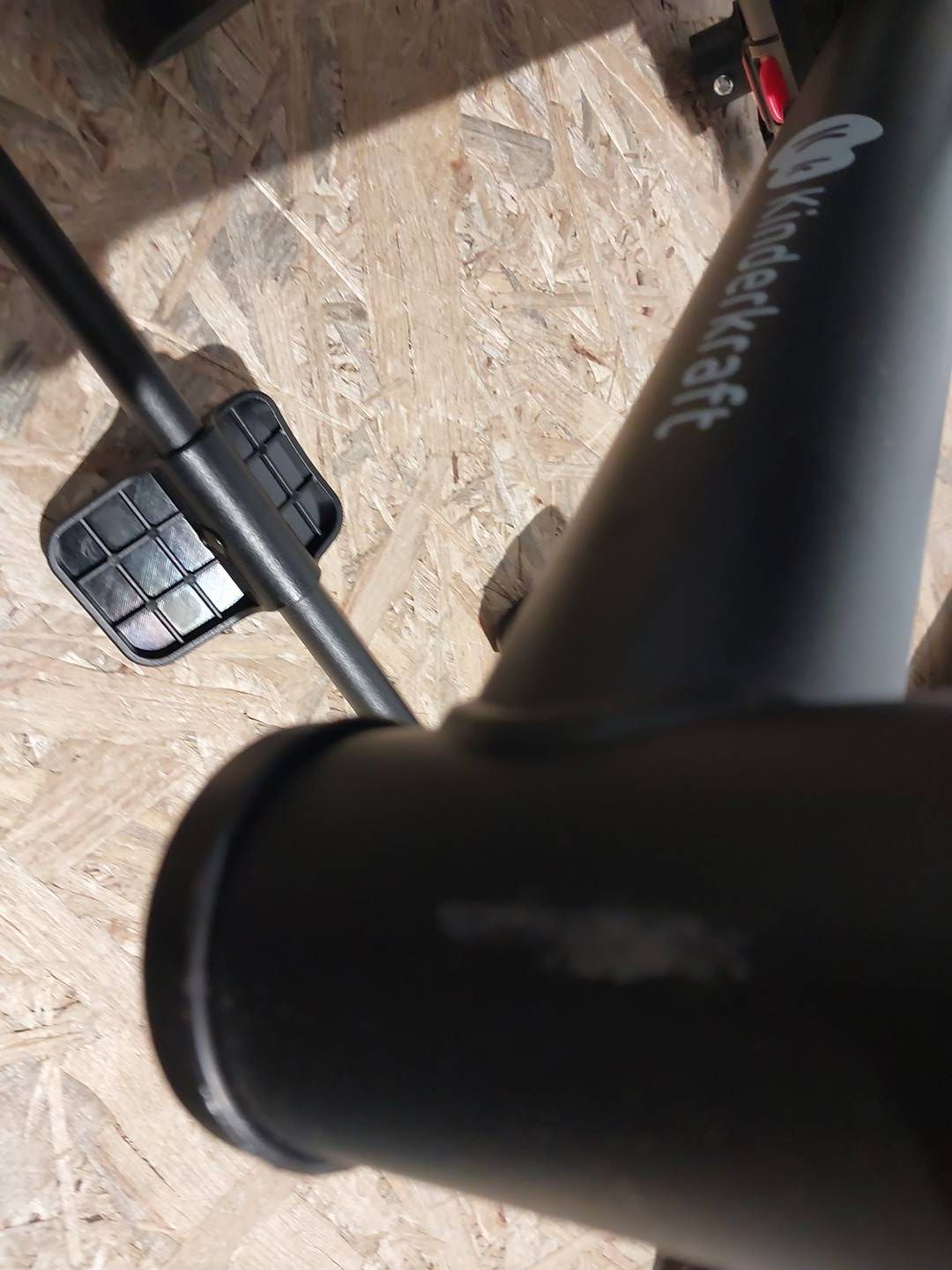 Przy przednim kole znajdują się składane podnóżki, na których maluch może oprzeć nogi. Sprawdzą się teź w przypadku młodszych dzieci, które jeszcze nie dosięgają do pedałów.