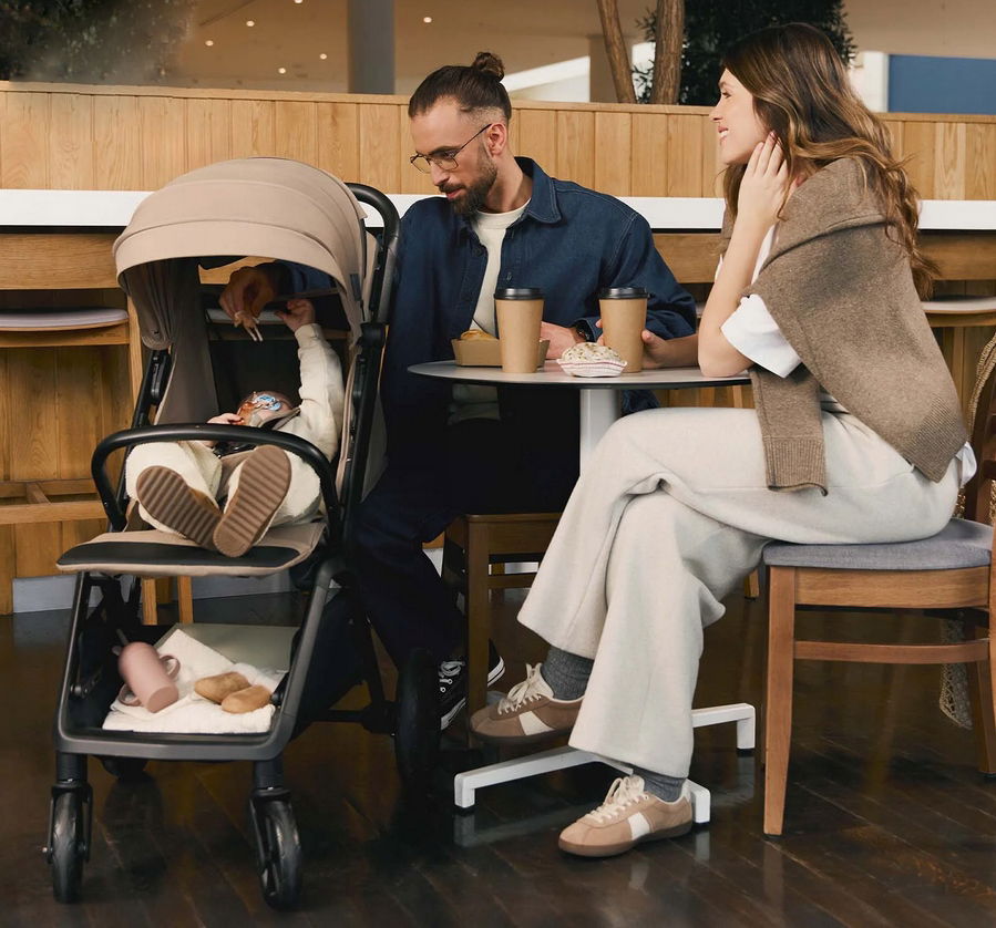 Barierka obrotowa 360° ułatwia wkładanie i wyjmowanie dziecka z wózka.
