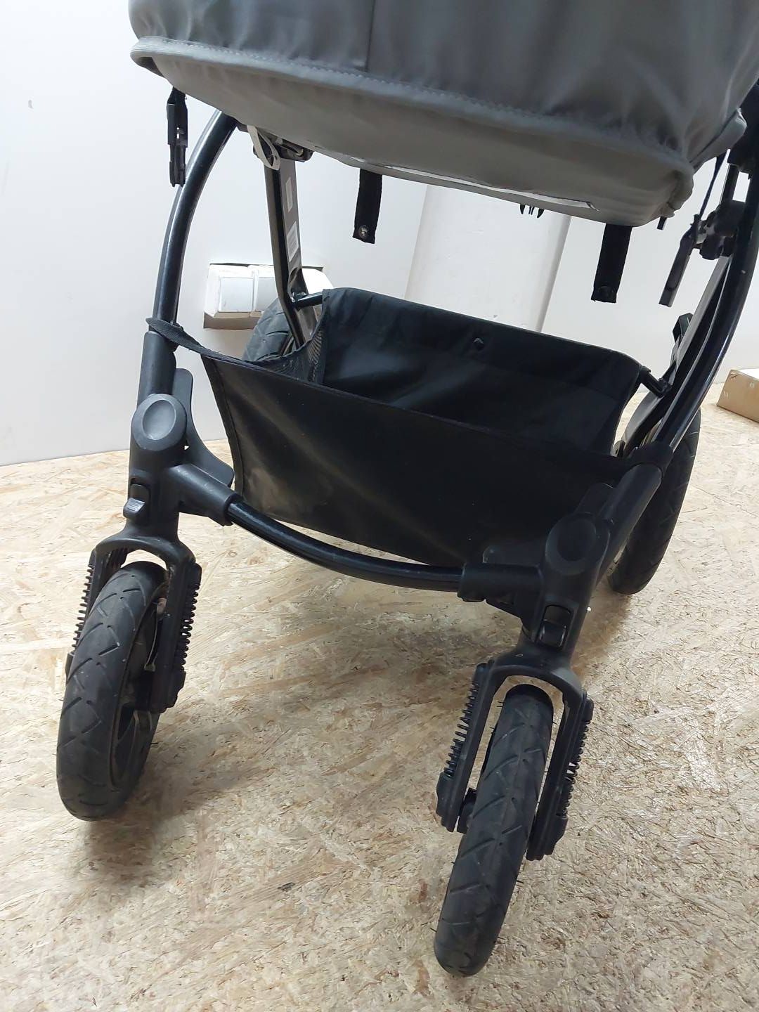 Moov posiada wytrzymałe koła - wszystkie są pompowane i amortyzowane, przednie - obrotowe, z blokadą do jazdy na wprost. Tak wyposażony wózek świetnie się prowadzi oraz jest wyjątkowo zwrotny. Wygodny, prosty w obsłudze centralny hamulec to kolejny atut wózka.