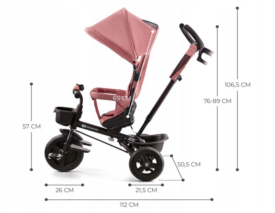 Kinderkraft Rowerek trójkołowy AVEO, Trójkołowiec, Spacerówka POWYSTAWOWY