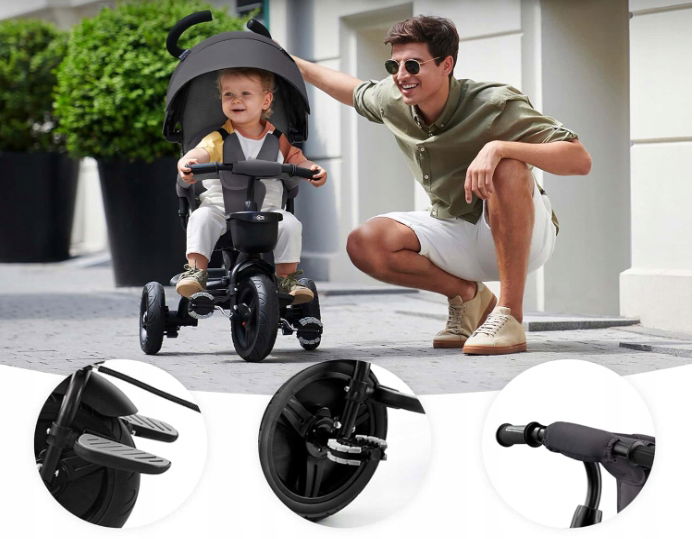 - ✴️ WIELOFUNKCYJNY: Składany trójkołowiec umożliwia konfiguracje dostosowane do wieku dziecka, możliwość jazdy przodem lub tyłem do kierunku jazdy. Można go używać na wiele sposobów, w zależności od poziomu rozwoju motorycznego dziecka. Od 9. miesiąca życia do około 5. roku życia.