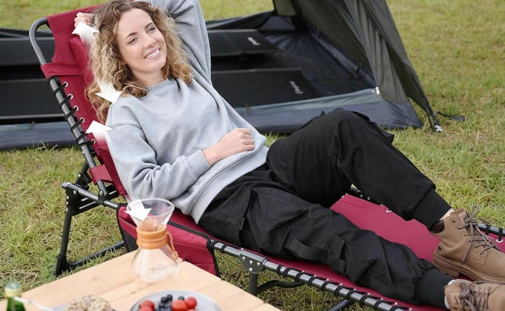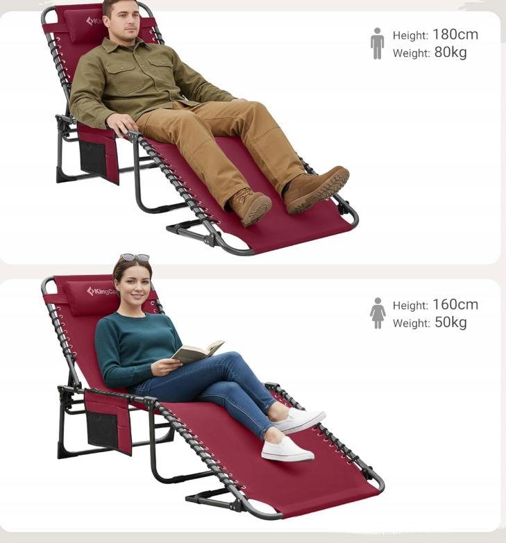 - ✴️【Wytrzymały i stabilny】Leżak kempingowy jest pokryty łatwym w pielęgnacji, wodoodpornym poliestrem Oxford 600D. Stabilny stelaż z rur stalowych z trzema nogami jest wyjątkowo wytrzymały. Obciążalność do 120 kg.