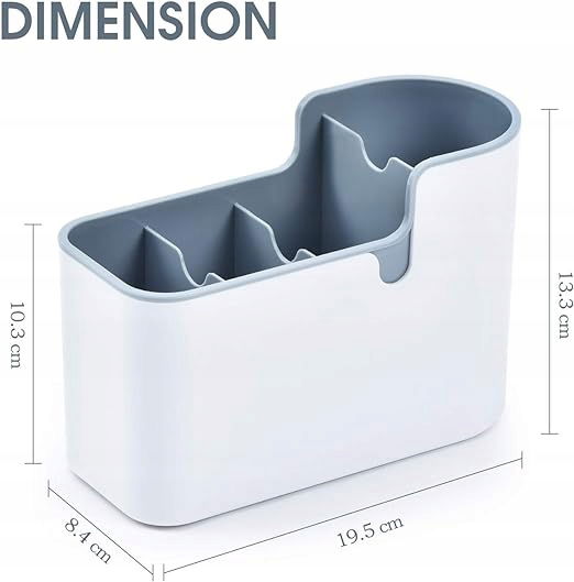 Ociekacz na sztućce ma 4 przegródki, zapewnia wystarczająco dużo miejsca na wszystkie przybory do mycia naczyń; ściereczki do mycia naczyń, gąbki, szczotki... - wszystko pod ręką, wszystko jest uporządkowane