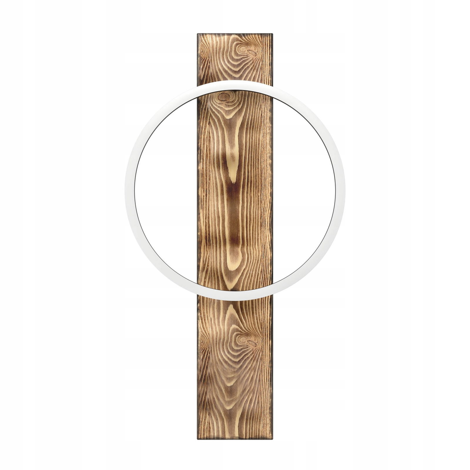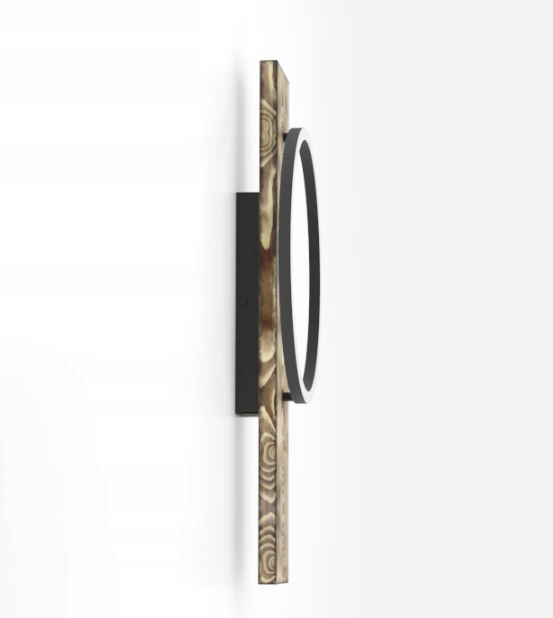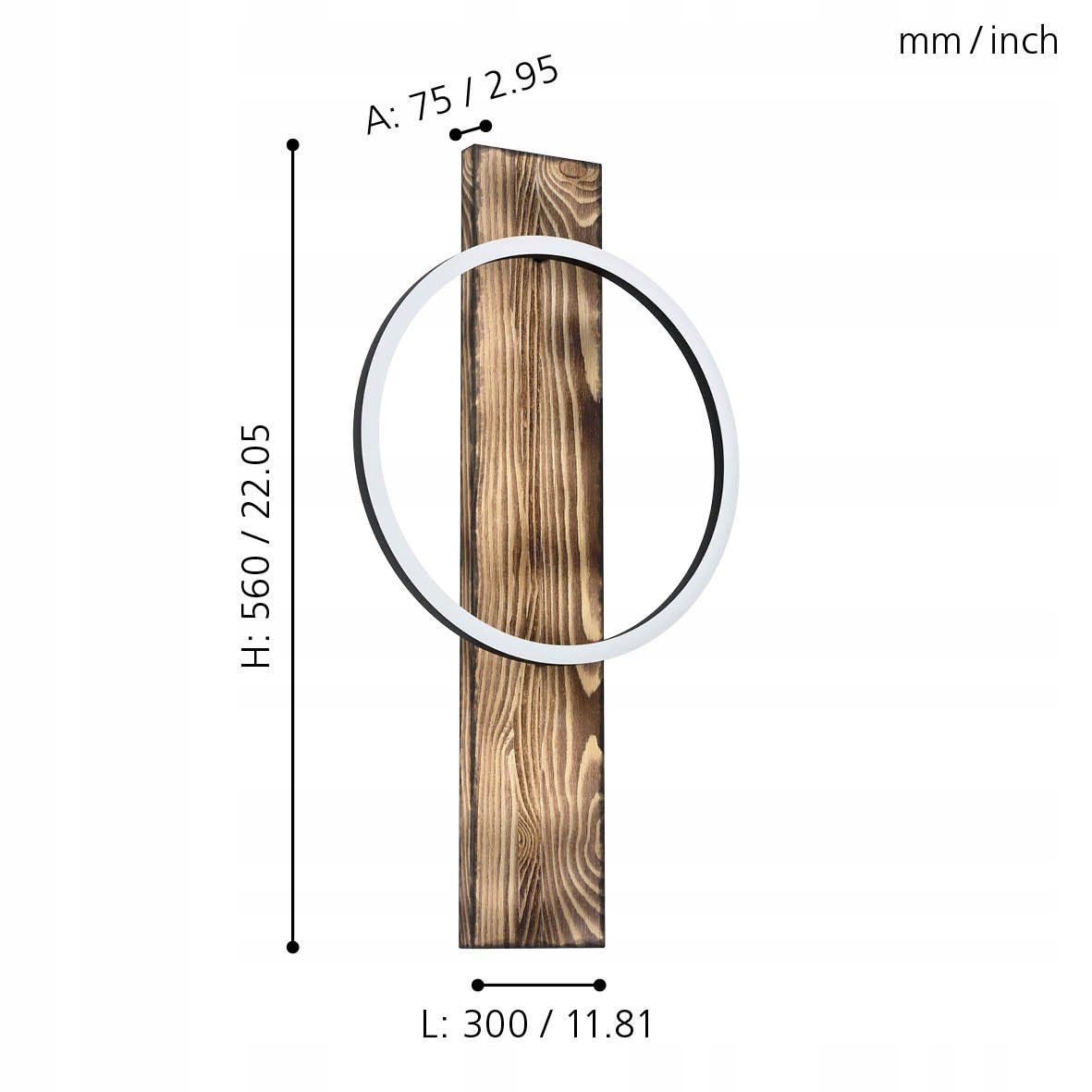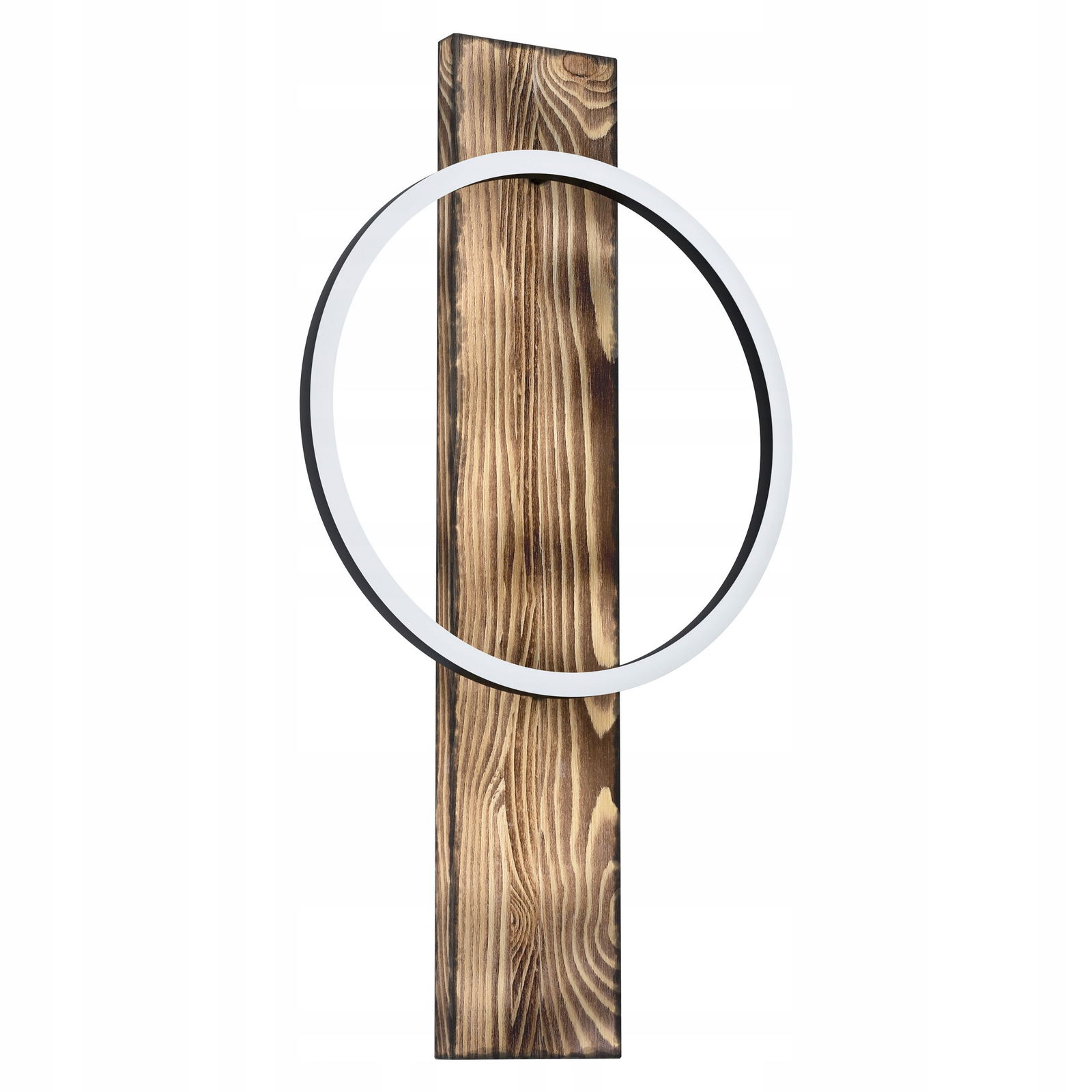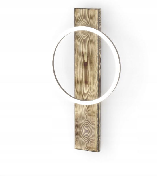 Lampa ścienna LED BOYAL wykonana jest z przypalanego drewna, do którego zamontowany jest jeden czarny, okrągły profil z diodami LED. Oprawa emituje przyjemne, ciepłe, białe światło. Dzięki połączeniu materiałów: rustykalnego drewna i chłodnego metalu, kinkiet bezproblemowo wpisuje się w nowoczesne trendy oraz w stylistykę vintage(czyli starym stylu). Dzięki swojemu nietypowemu, a jednocześnie minimalistycznemu wzornictwu, przyciąga wzrok w każdym pomieszczeniu - czy to w salonie, sypialni, przedpokoju czy jadalni.