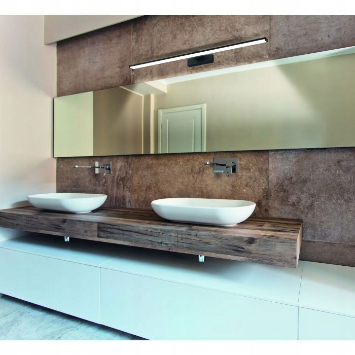 Lampa łazienkowa, nad lustro serii PANDELLA 1 wykonana jest z czarnego tworzywa i aluminium. Biała przesłona wykonana z tworzywa sztucznego. Posiada stopień ochrony IP44 oraz źródło światła LED o mocy 11W, które emituje neutralne białe światło o strumieniu 1350 lm. Szerokość lammpy wynosi 60 cm.