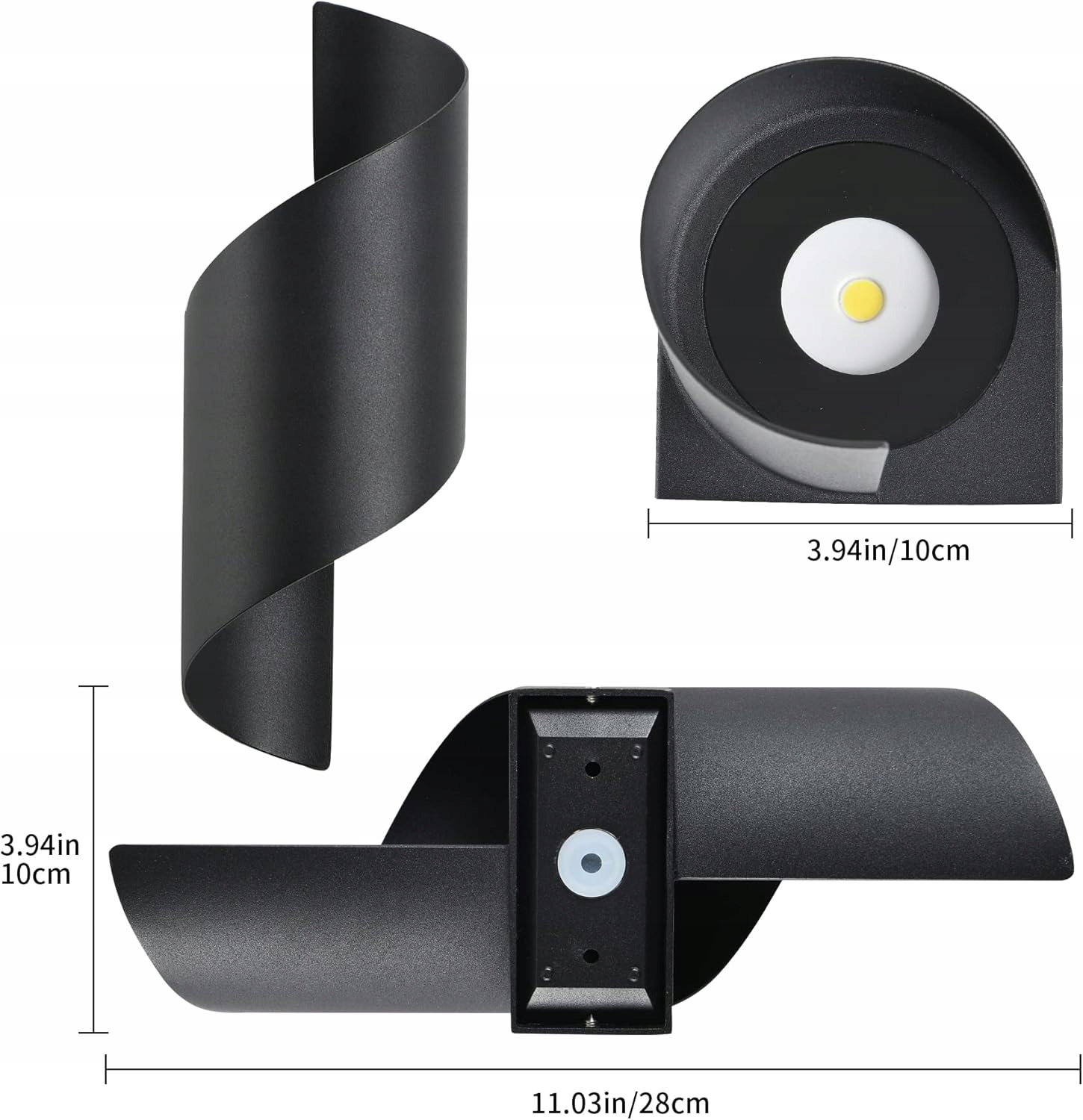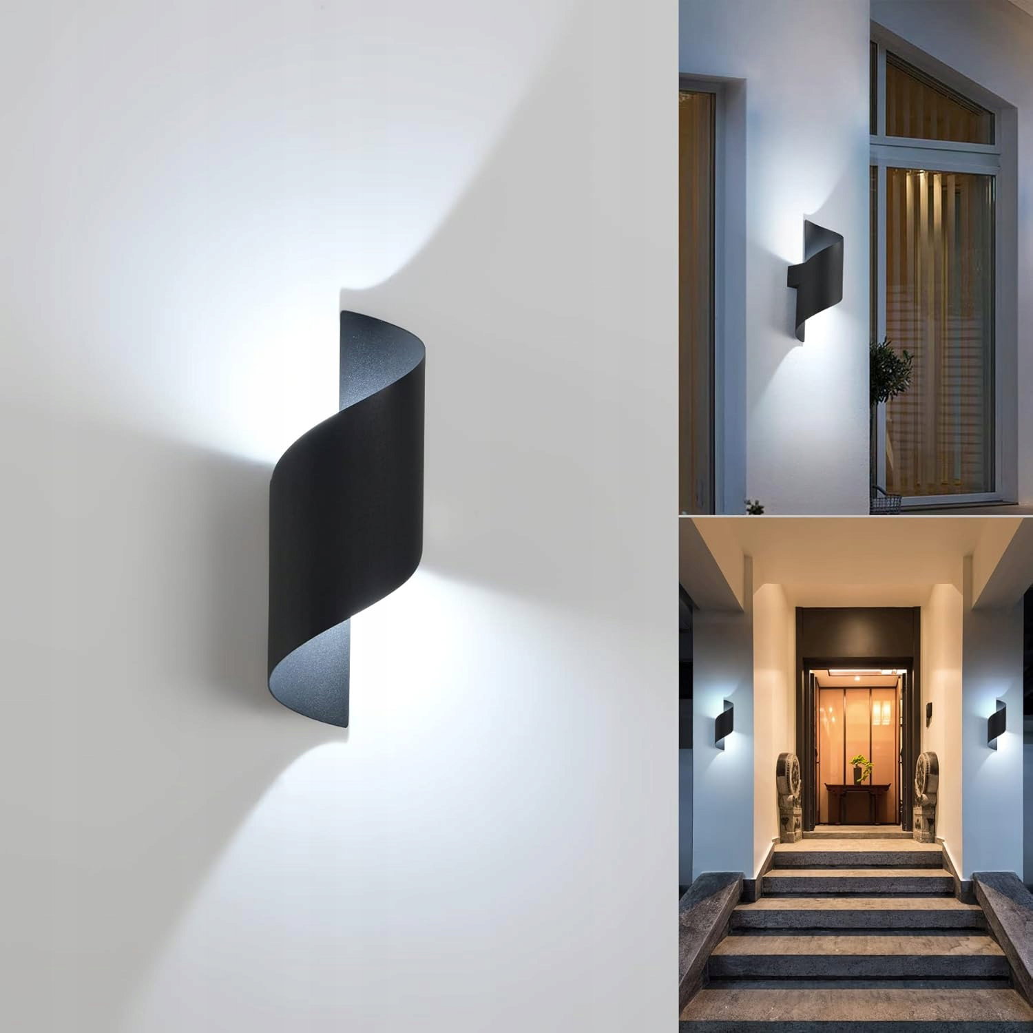 Kinkiet ścienny nowoczesny spirala 10W 3000K czarny IP65 wodoodporny