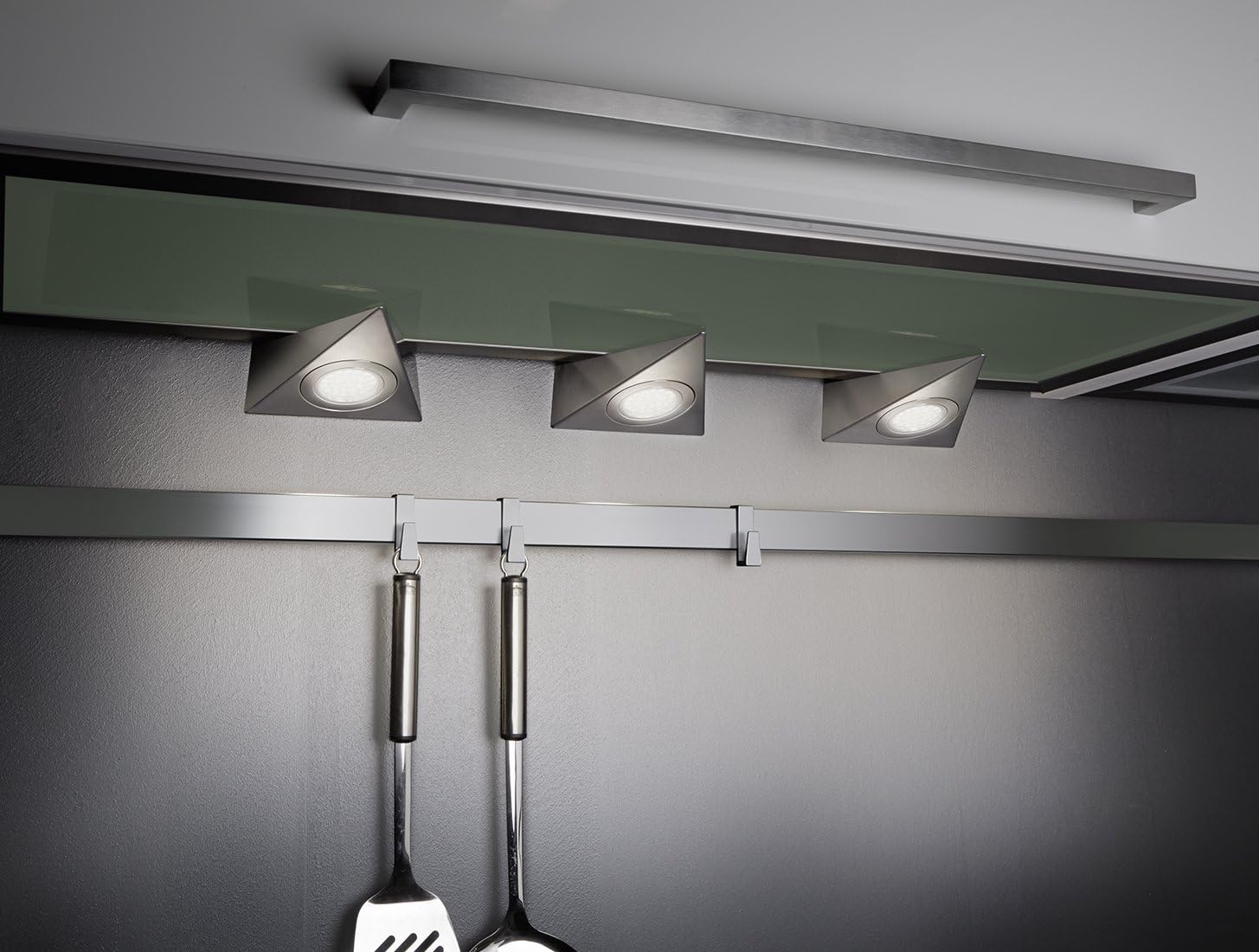 Trio Leuchten Ecco to 3-częściowy zestaw lamp LED podszafkowych, który zapewnia jasne, równomierne światło dokładnie tam, gdzie go potrzebujesz – bez cieni, bez kompromisów
