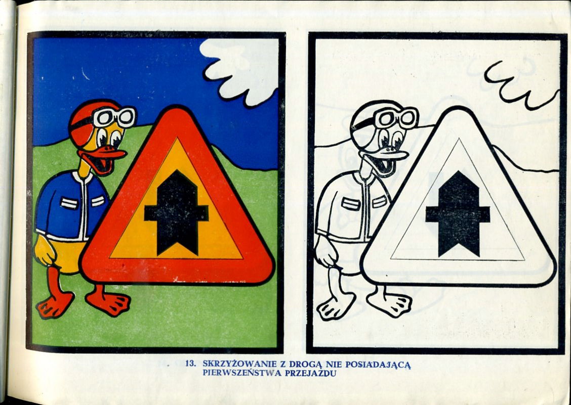 • Kaczor Donald uczy znaków drogowych Znaki ostrzegawcze