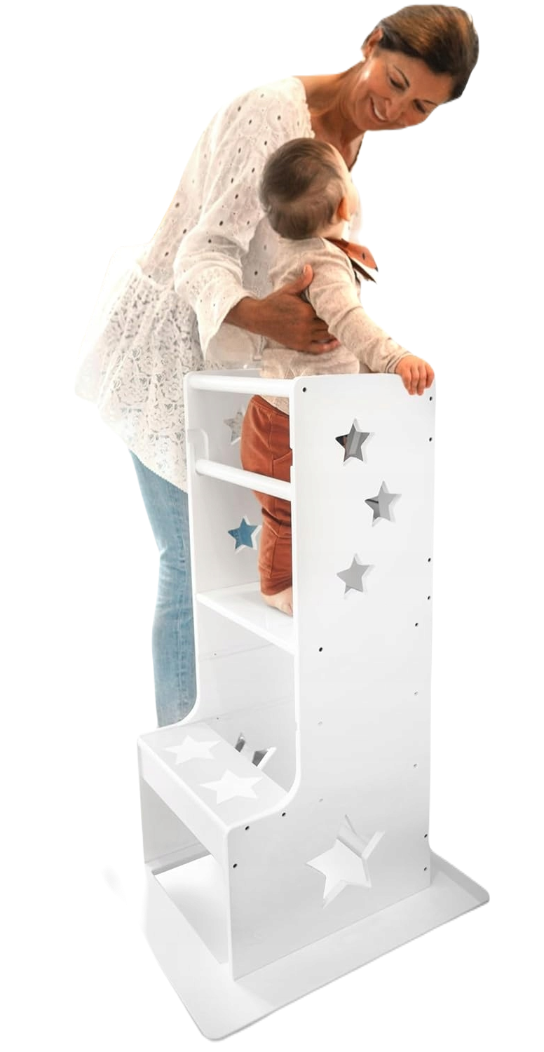 Antypoślizgowy filc w kształcie gwiazdy zapewnia bezpieczne, pewne i solidne trzymanie. Dzięki 6-stopniowej regulowanej wysokości stojaka wieżę edukacyjną można regulować od pierwszego miejsca. Używaj przez lata.