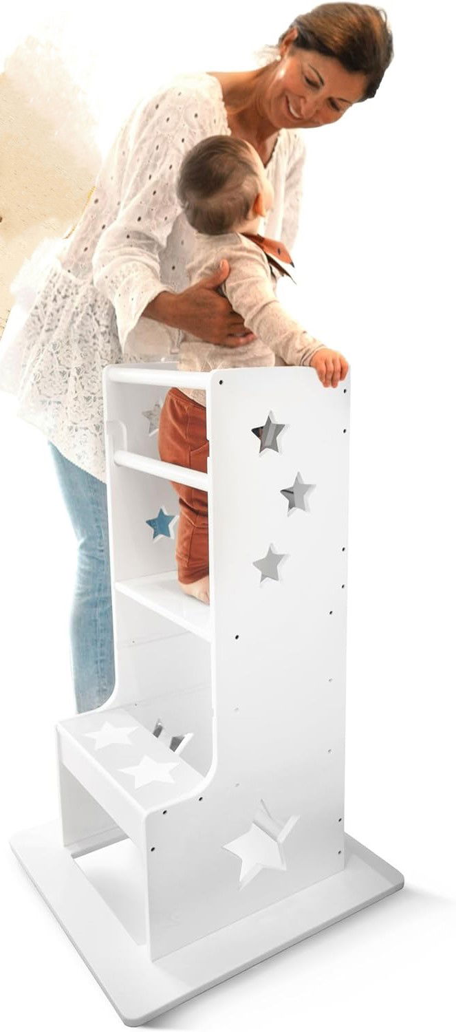 To solidny i bezpieczny podest, który został zaprojektowany z myślą o dzieciach. Jest to nie tylko narzędzie wspomagające naukę kucharską, ale także produkt zgodny z ideą Montessori, pozwalający na swobodne eksplorowanie otoczenia.