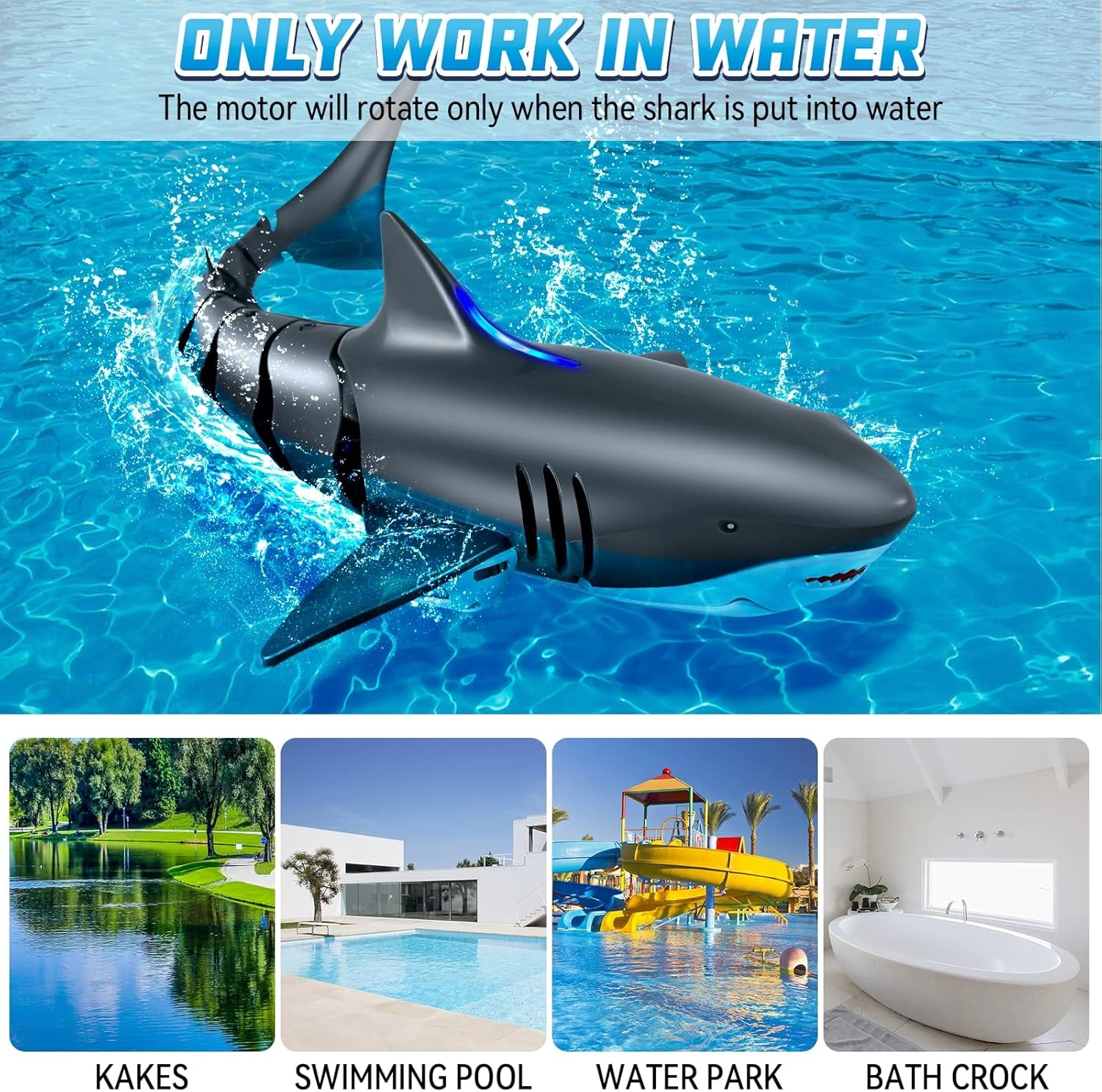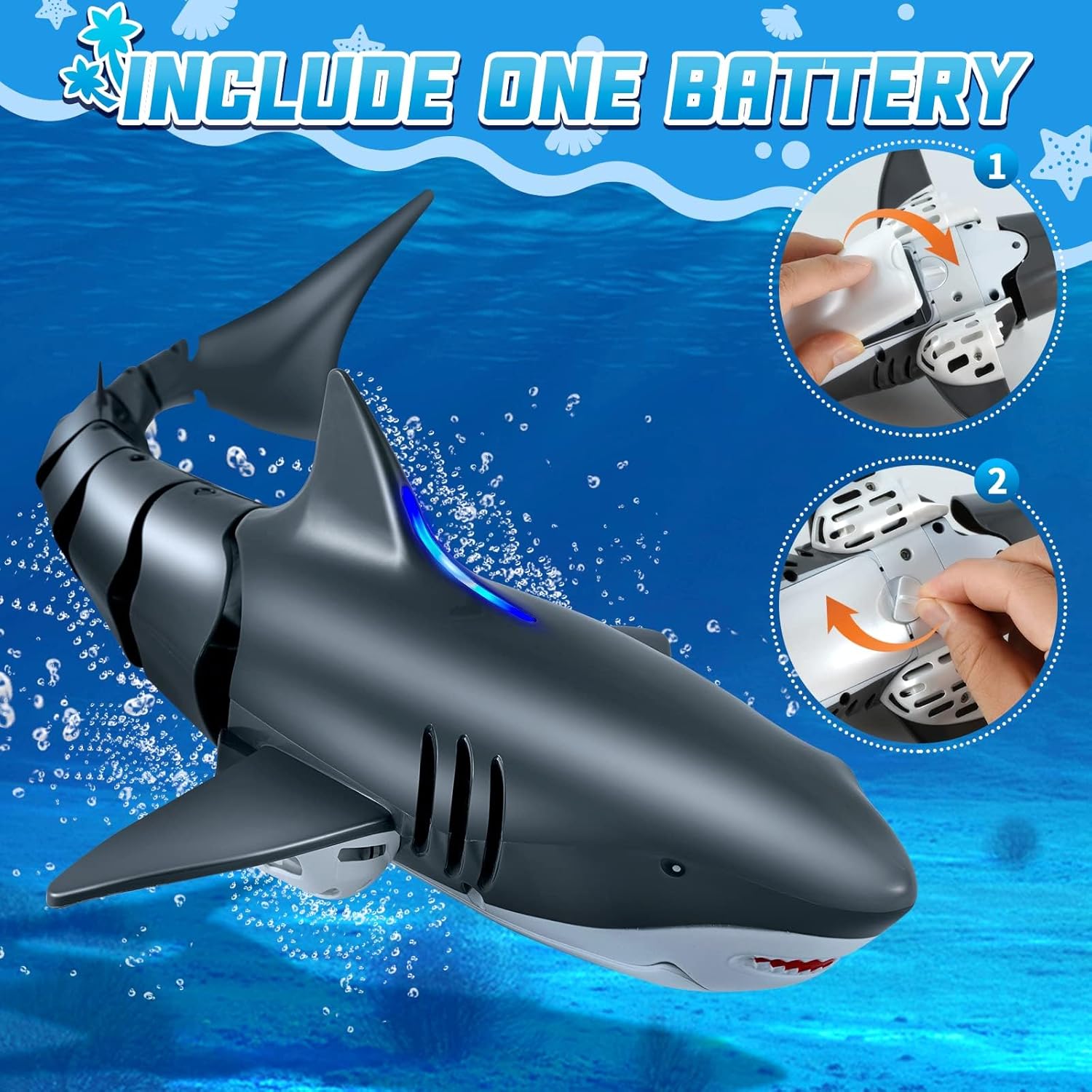 wygląd rekina, elastyczne przeguby ogonowe, szybko działające podwójne śmigła i wydajny silnik zapewniają dzieciom wyjątkowe i przyjemne wrażenia podczas zabawy