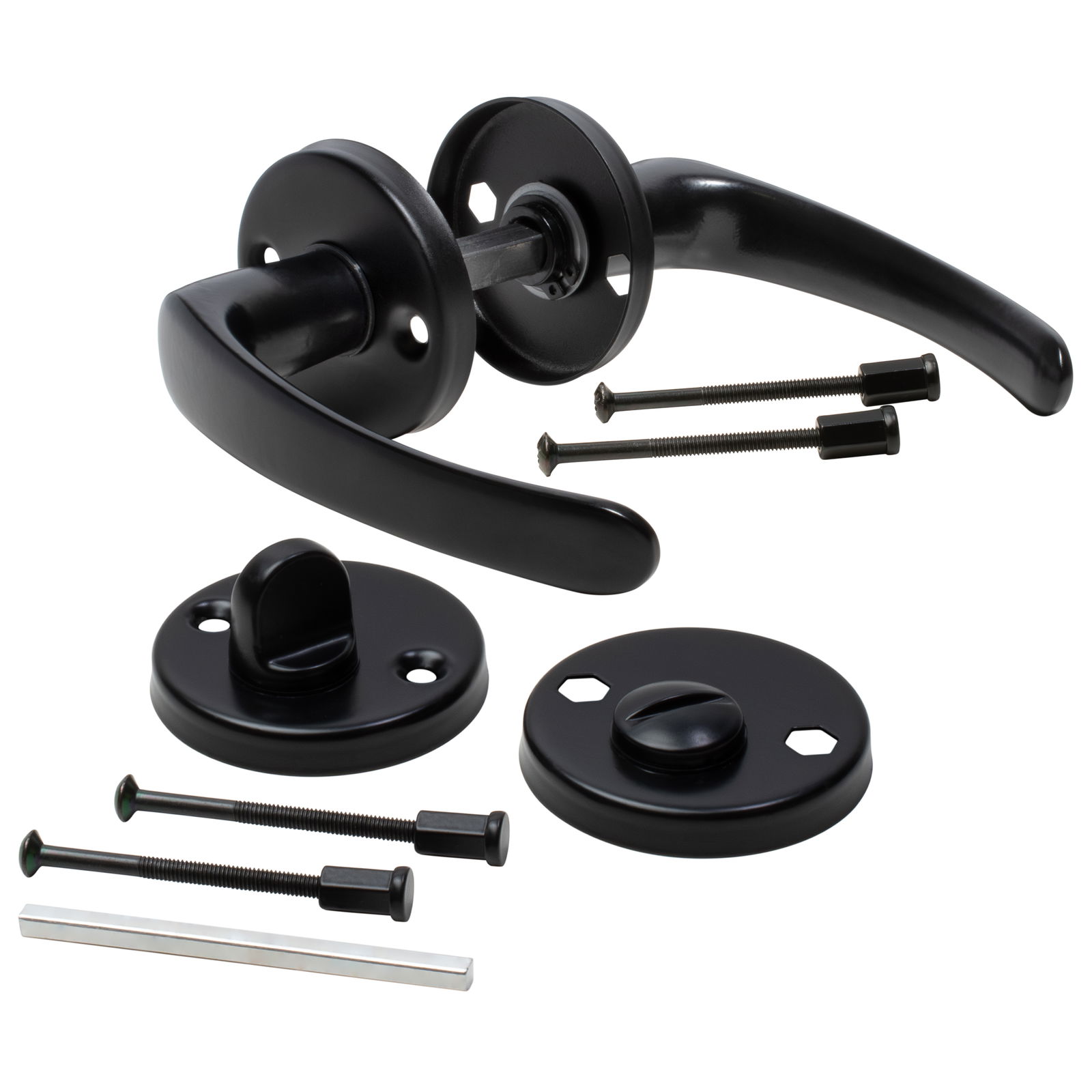 Klamka drzwiowa czarna z rozetą do WC GRATIS, klamka do drzwi