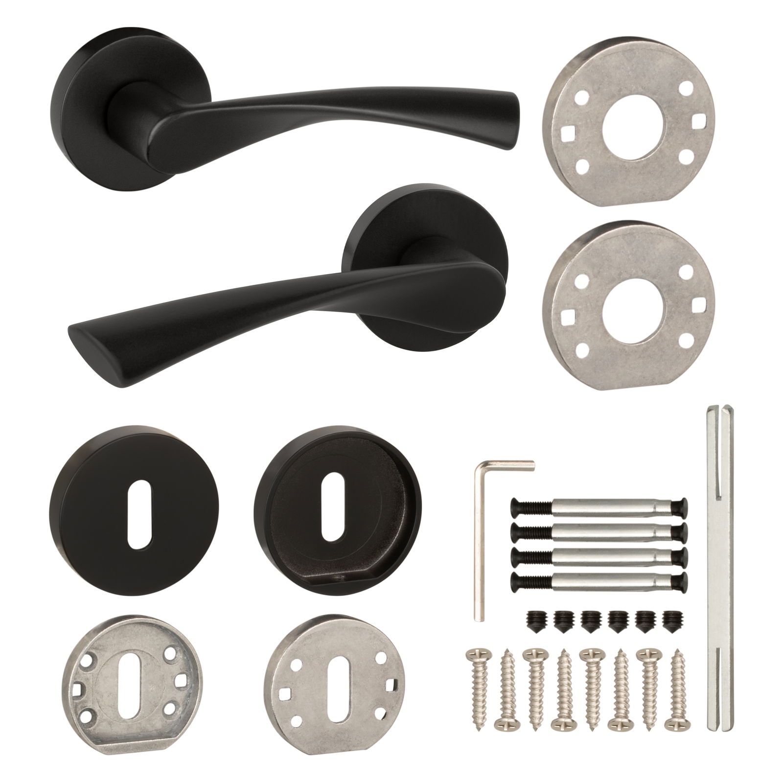 - 2 szt. klamek z rozetą (na obie strony drzwi)