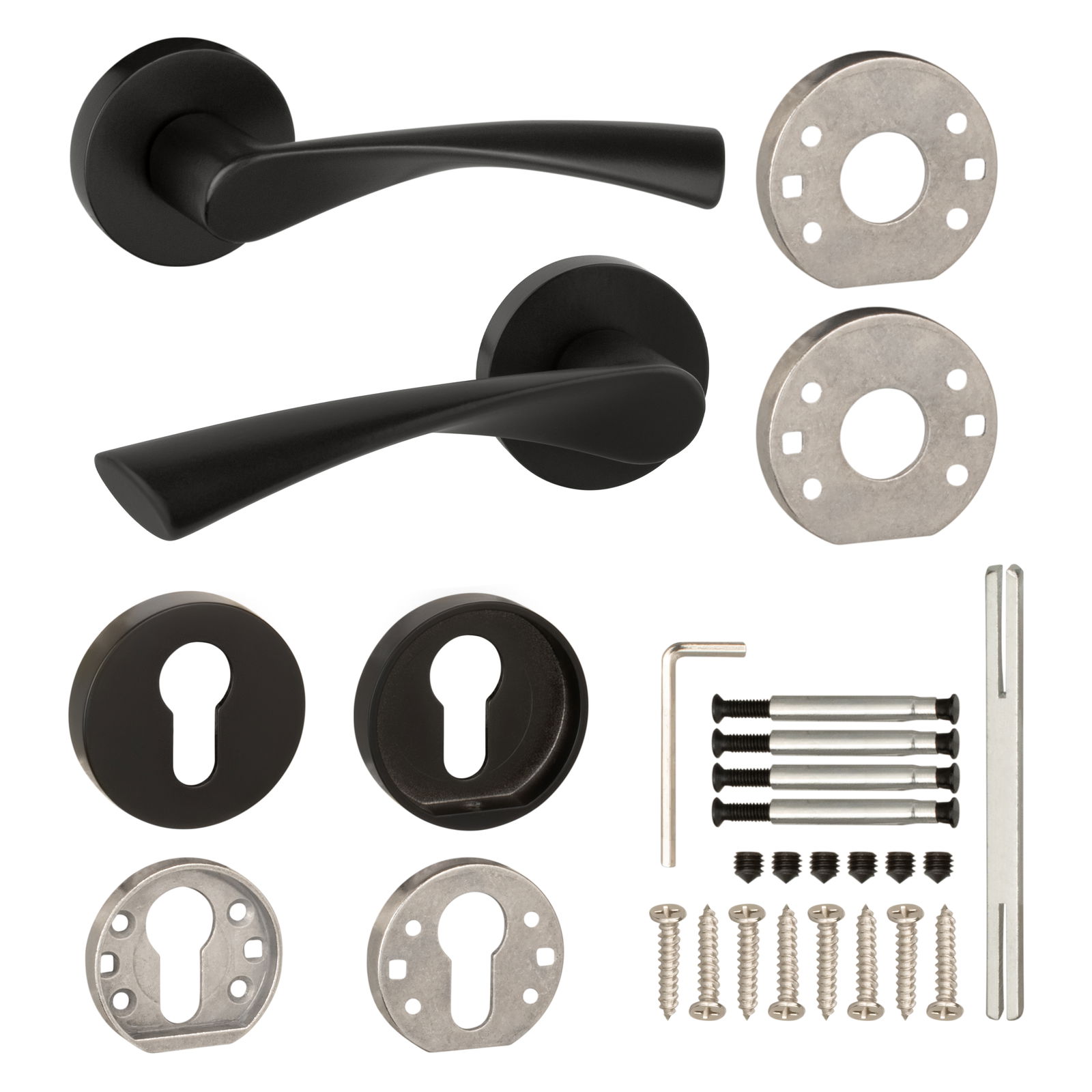 - 2 szt. klamek z rozetą (na obie strony drzwi)
