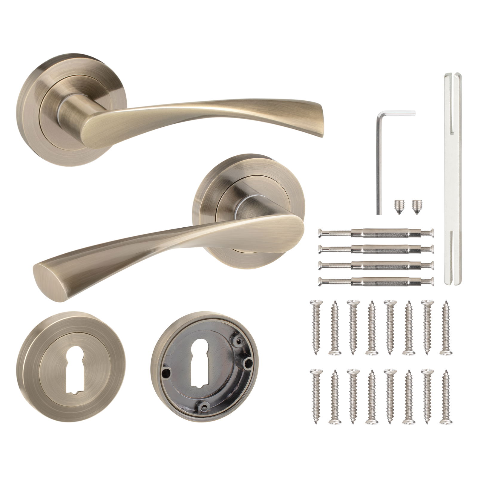 - 2 szt. klamek z rozetą (na obie strony drzwi)