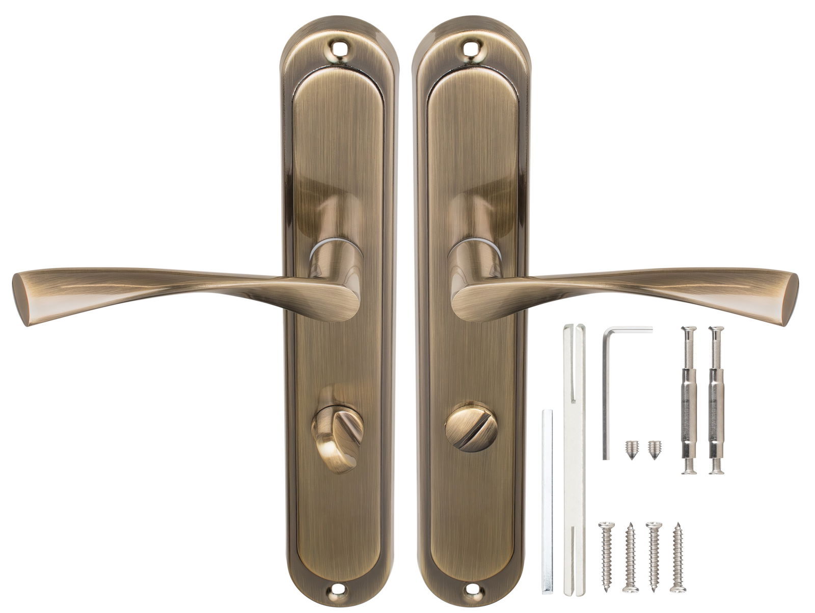 - Klamka na podłużnym szyldzie - 2 sztuki ( na obie strony jednych drzwi )