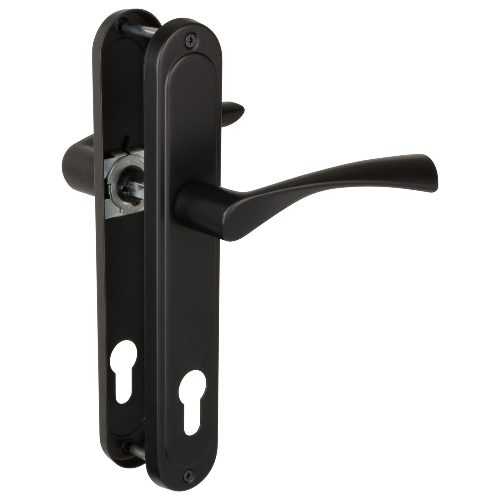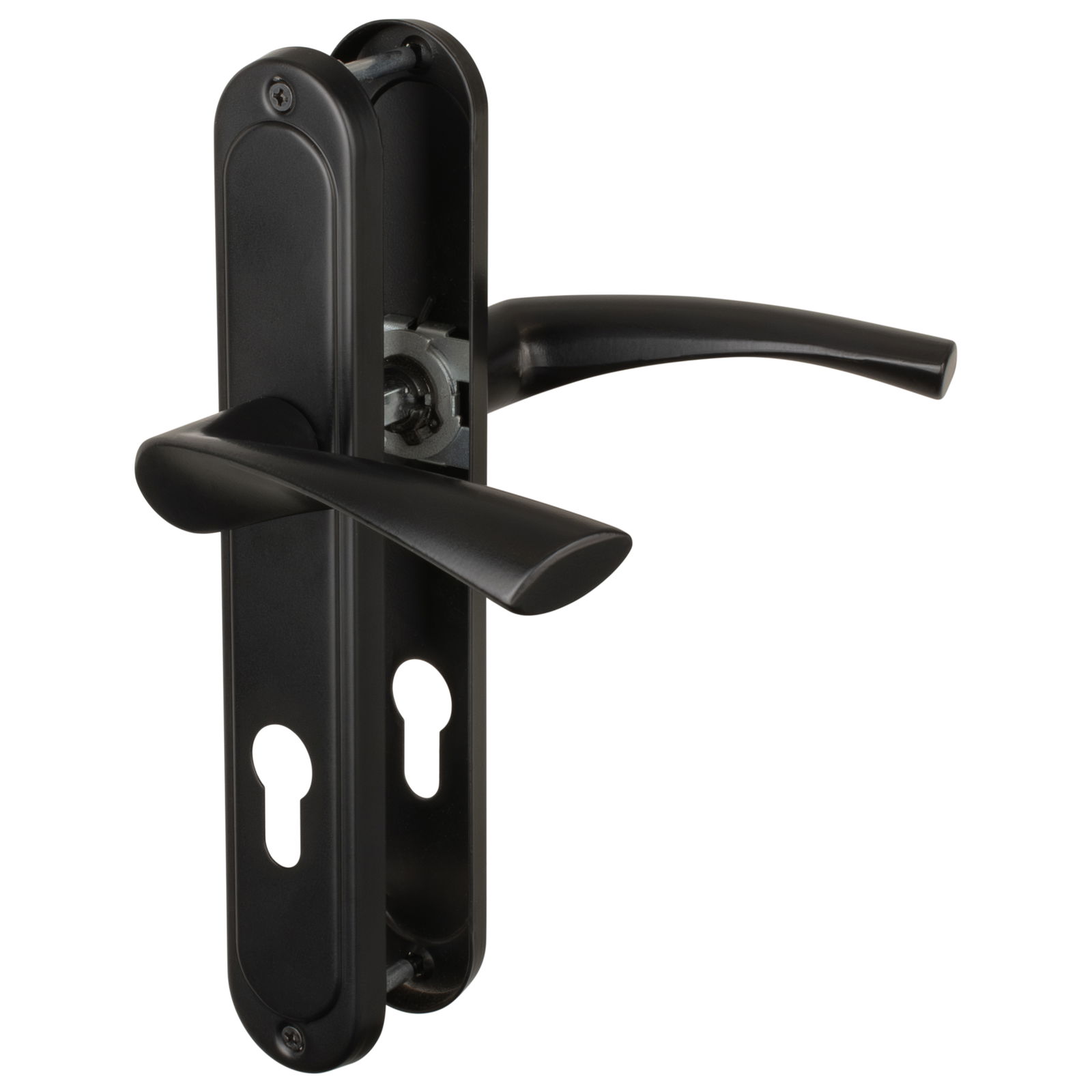Klamka do drzwi wewnętrznych ETNA jest odpowiednia zarówno do drzwi lewych jak i prawych. Zastosowany trzpień o długości 110mm umożliwia montaż do każdych drzwi wewnętrznych o grubości od 38mm do 50 mm. W zestawie śruby przelotowe do montażu
