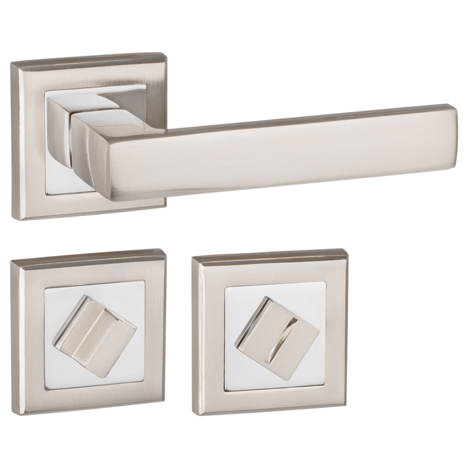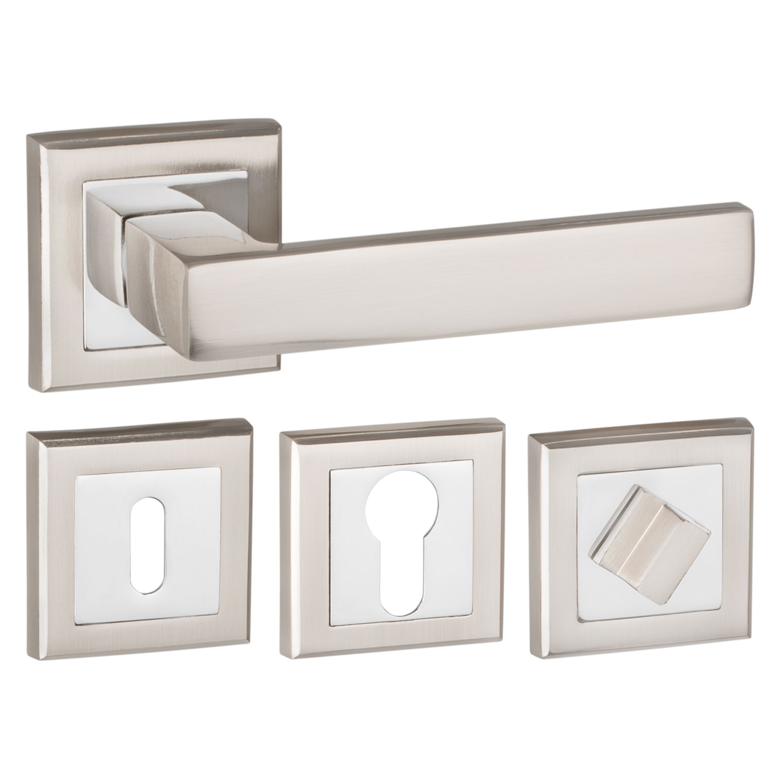 ➡️ Komplet klamek TENORIO z rozetami do WC GRATIS! Kwadratowa klamka ERGO w eleganckim wykończeniu nikiel szczotkowany / chrom to perfekcyjne połączenie nowoczesnego designu i wygody użytkowania.