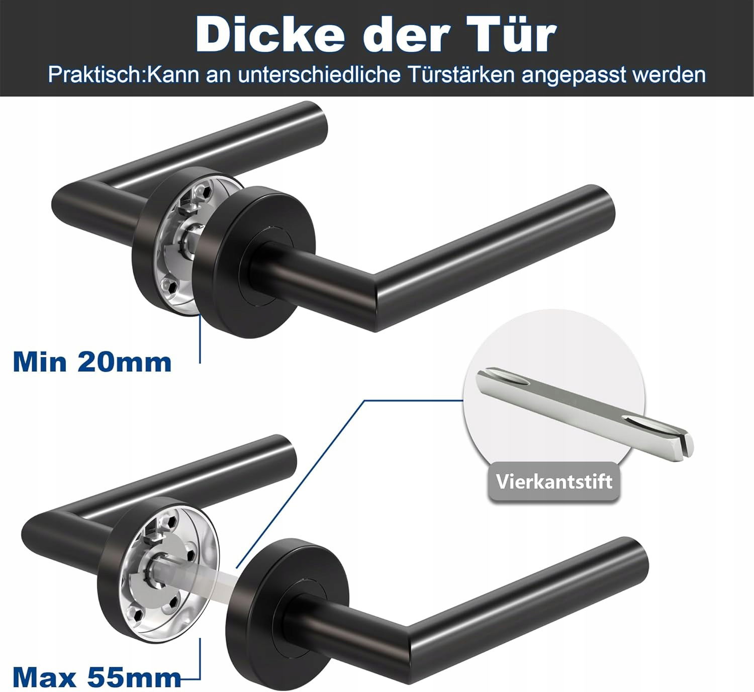 Wykonane z wysokiej jakości stali nierdzewnej, klamki są nie tylko estetyczne, ale również trwałe i wytrzymałe. Dzięki solidnym śrubom są stabilne i nie chwieją się podczas użytkowania. Idealne do drzwi o grubości od 2 cm do 5,5 cm.