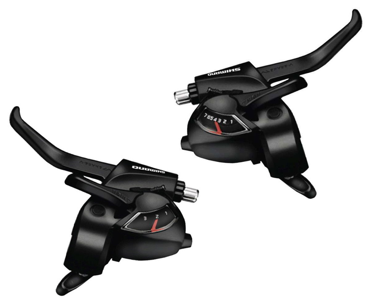 Klamkomanetki rowerowe prawa i lewa, tył i przód czarne Shimano ST-EF41 3x7
