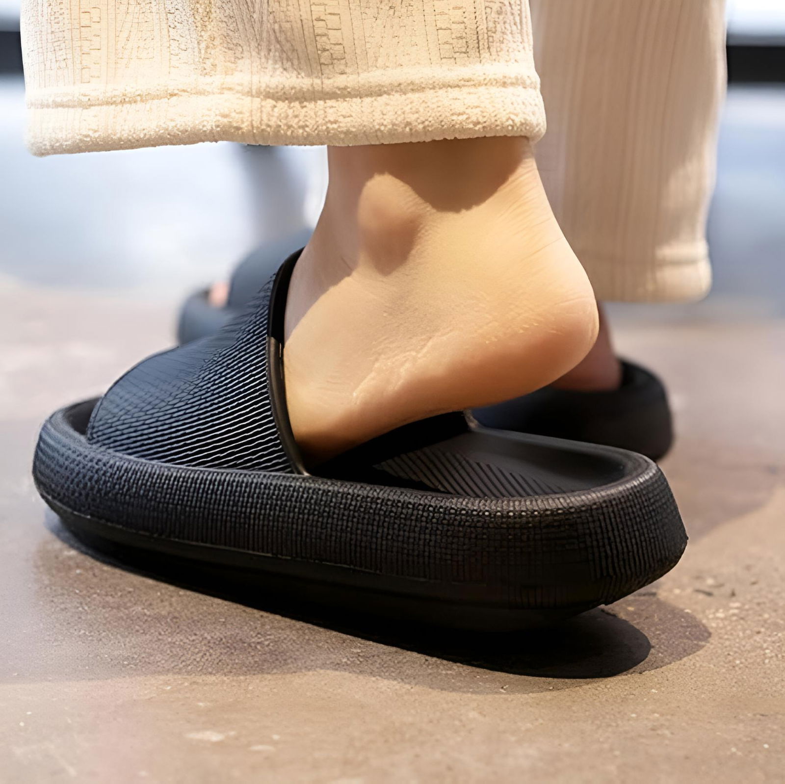 ? Nie – podeszwa ma antypoślizgową strukturę, co gwarantuje bezpieczeństwo na mokrych powierzchniach.