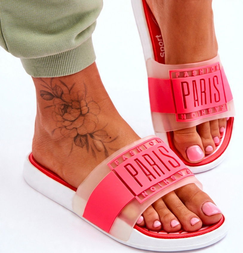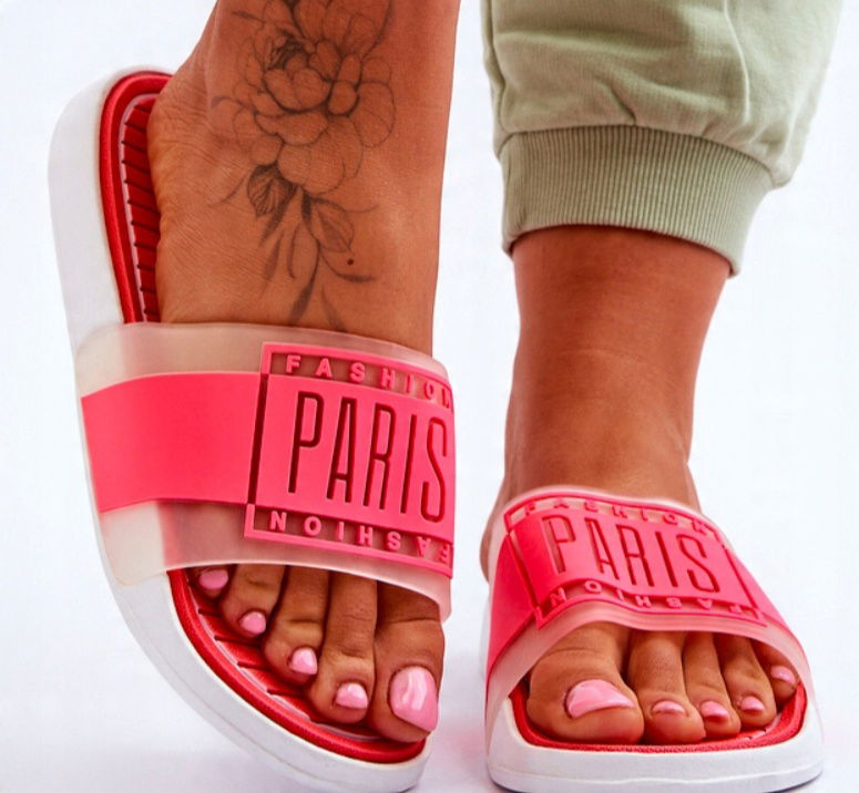 Te lekkie, damskie klapki świetnie sprawdzą się w upalne dni! Są niezwykle lekkie i wygodne. Paseczek z napisem „Fashion Paris” został wykonany z gumowego tworzywa, natomiast wkładka wraz z platformą z piankowego tworzywa. Klapki osadzono na delikatnej platformie, która świetnie sprawdzi się np.: podczas spaceru po gorącym piasku. Te sportowe klapki będą także odpowiednie na basen.