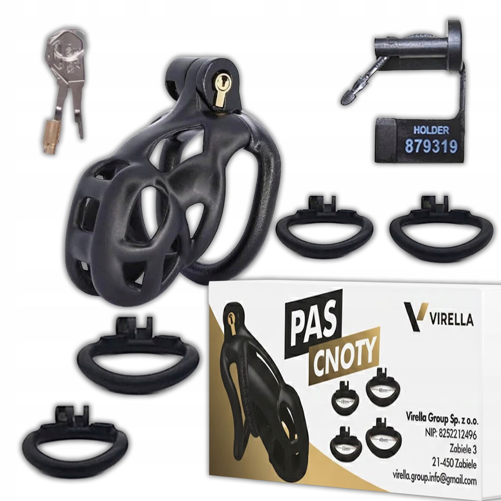 ✅ Dyskretna, pochylona konstrukcja | ✅ 4 pierścienie dopasowania | ✅ Lekka i wytrzymała żywica nylonowa | ✅ Metalowa kłódka + 5 plomb z numerami | ✅ Higiena i oddawanie moczu bez zdejmowania | ✅ Waga ok. 150 g | ✅ Rozmiar S | ✅ Dyskretna wysyłka
