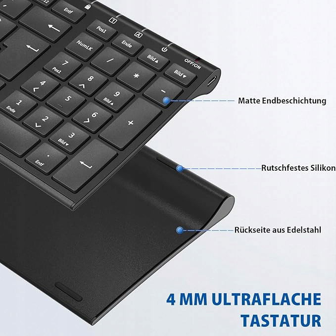 Ciche pisanie dla pełnej koncentracji: ciche klawisze scissor zapewniają uczucie dotykania przypominające laptopa i zmniejszają zmęczenie palców. Idealne rozwiązanie do biur wielkopowierzchniowych, domowych biur i długich sesji roboczych.