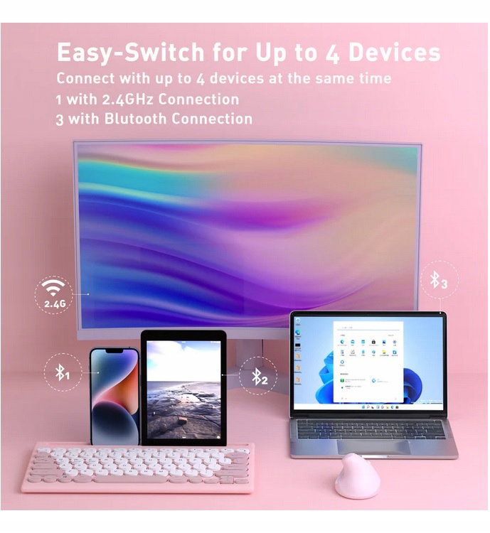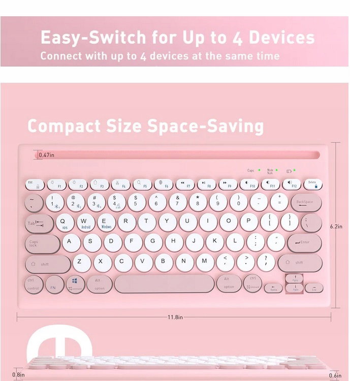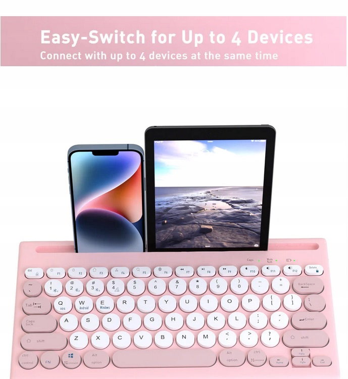 Bezprzewodowa klawiatura Mytrix - Multi-Device Bluetooth - różowa, z przełącznikiem Easy dla maksymalnie 4 urządzeń, laptop, Windows, Mac, Chrome OS, Android, iPadOS!!!
