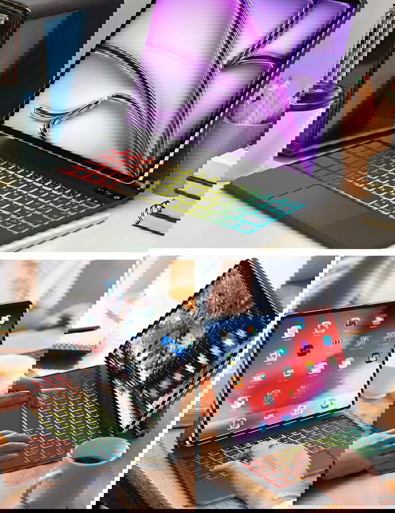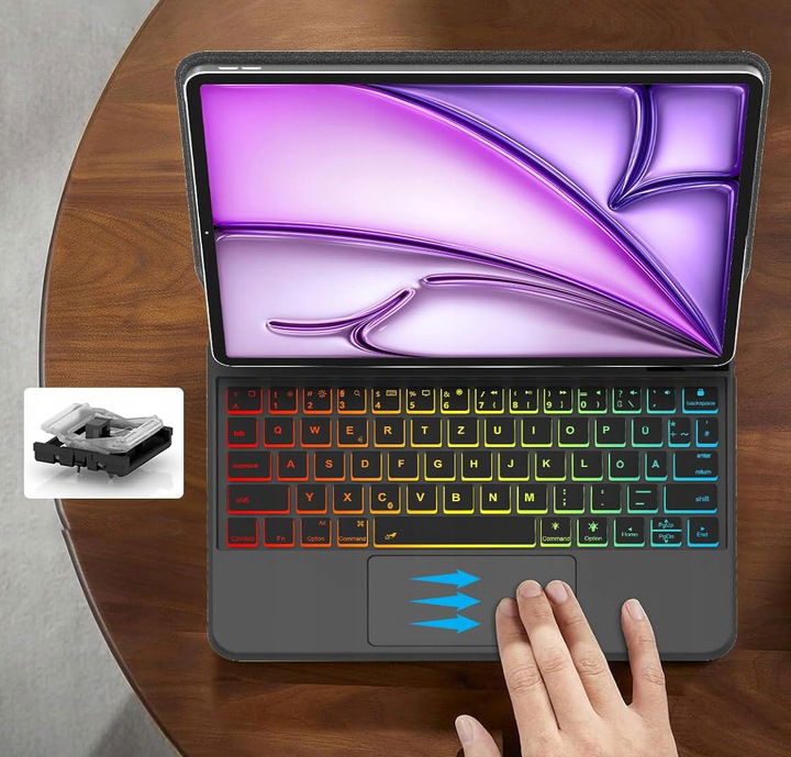 Wyróżnia się 7 kolorami podświetlenia klawiszy, które zmieniają się w zależności od preferencji użytkownika. Umożliwia to wygodne korzystanie z iPada w różnych warunkach oświetleniowych, a 3 poziomy jasności dostosowują widoczność klawiatury do indywidualnych potrzeb. Dodatkowo, klawiatura wyposażona jest w precyzyjny touchpad, co wspomaga łatwą nawigację i zwiększa komfort pracy.