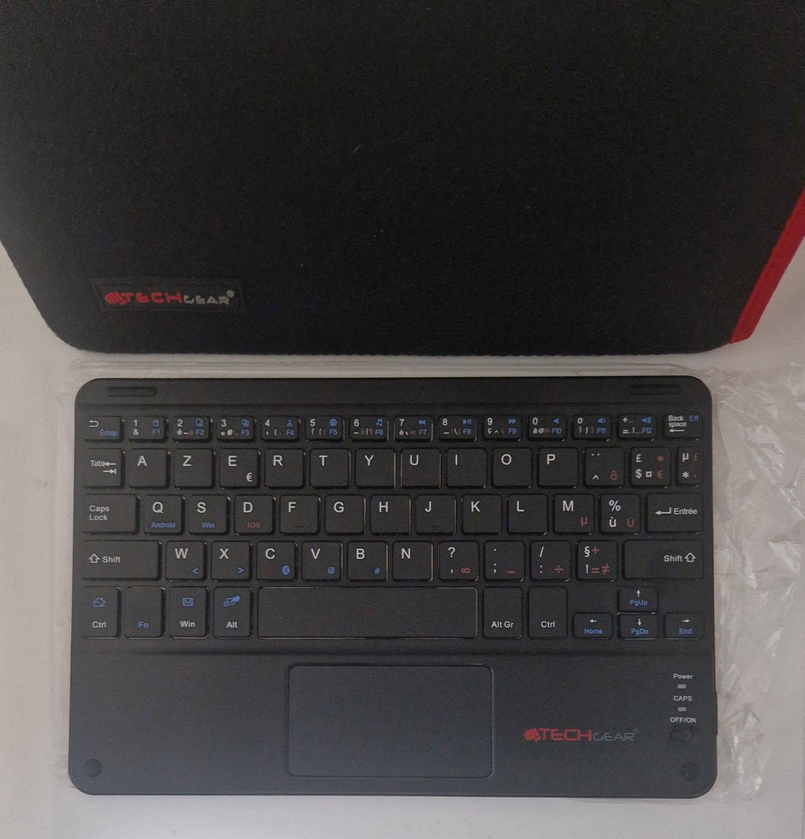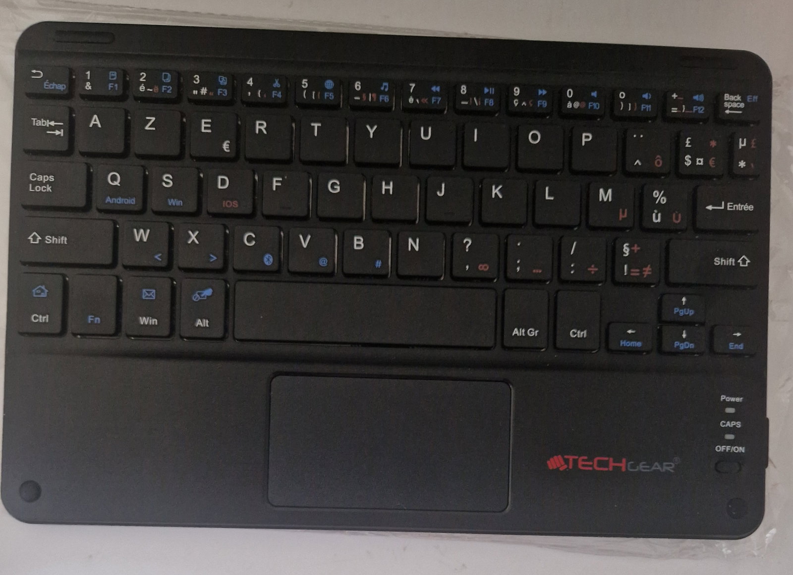 Na sprzedaż bezprzewodowa klawiatura Bluetooth marki TECHGEAR z serii Active Strike Pro. Jest to ultra-płaski model z wbudowanym touchpadem, idealny do pracy z tabletem (iPad, Samsung Galaxy Tab), smartfonem lub telewizorem Smart TV.