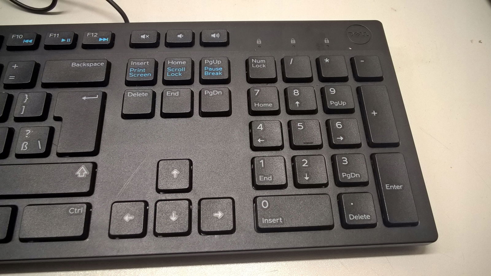 Niewielka, choć pełnowymiarowa klawiatura przewodowa firmy Dell z klawiszami numerycznymi znakomicie sprawdza się w domu i biurze. Trwała konstrukcja i ciche klawisze zapewniają komfort podczas codziennej pracy na komputerze. Przewodową klawiaturę firmy Dell można również uzupełnić o opcjonalną podpórkę pod nadgarstki (sprzedawaną oddzielnie).