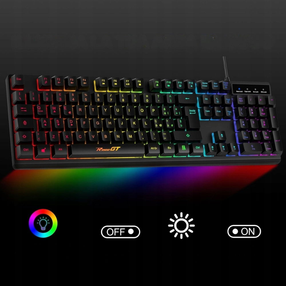 Klawiatura do gier RaceGT Led USB 104 Klawisze – Ergonomiczna i Stylowa!