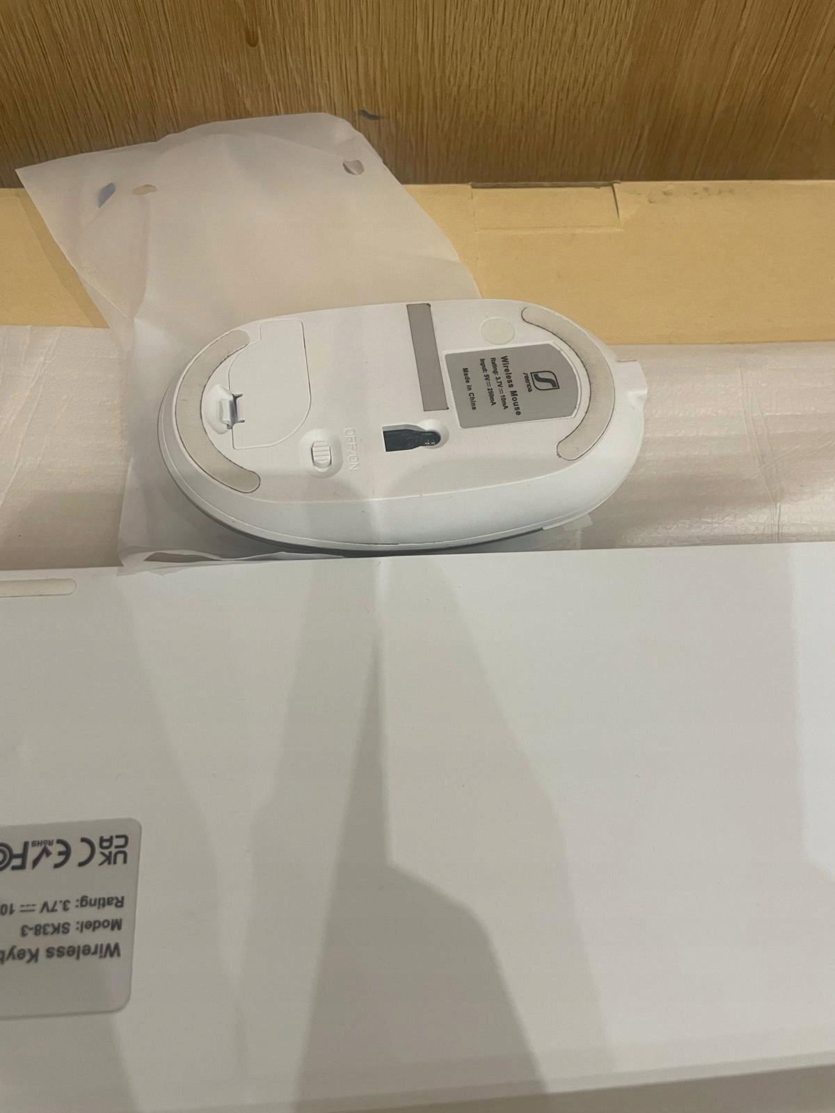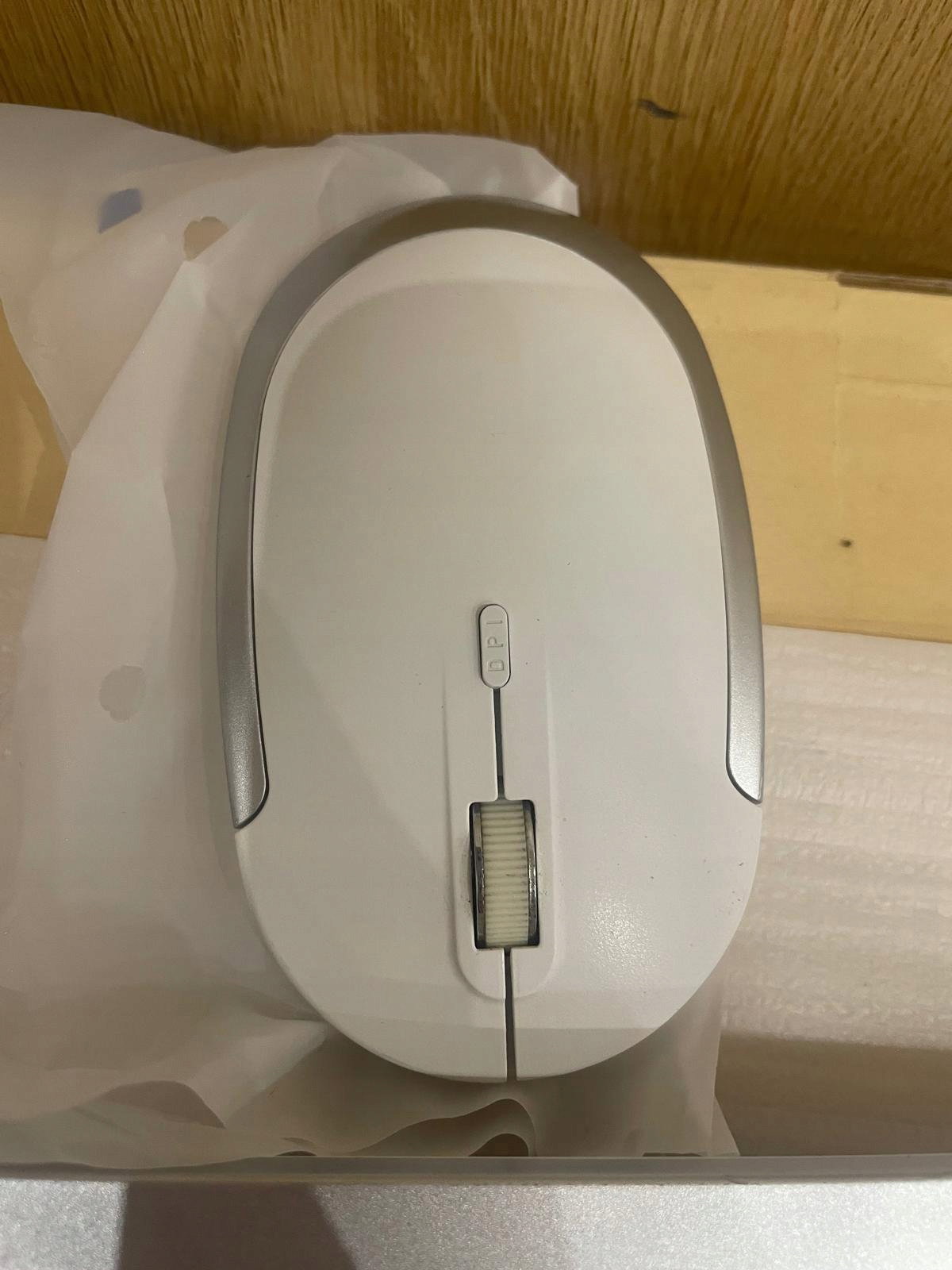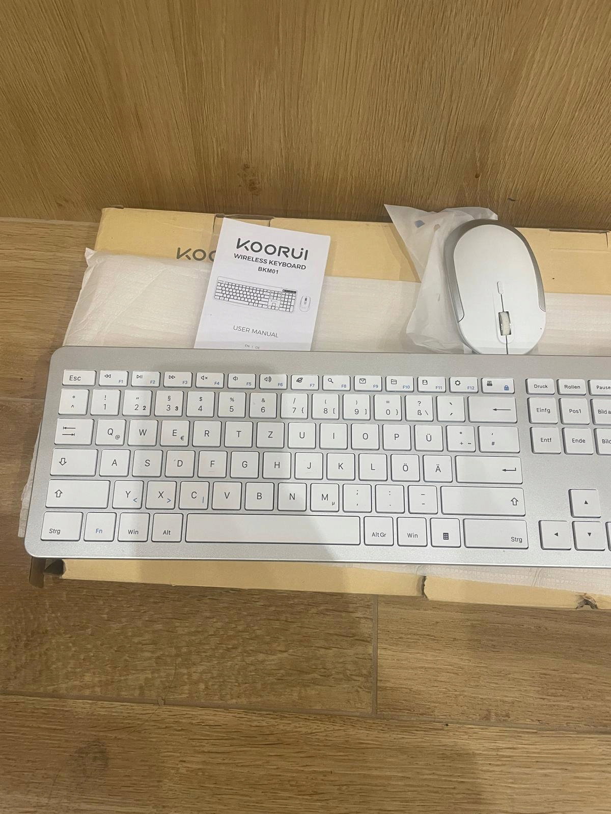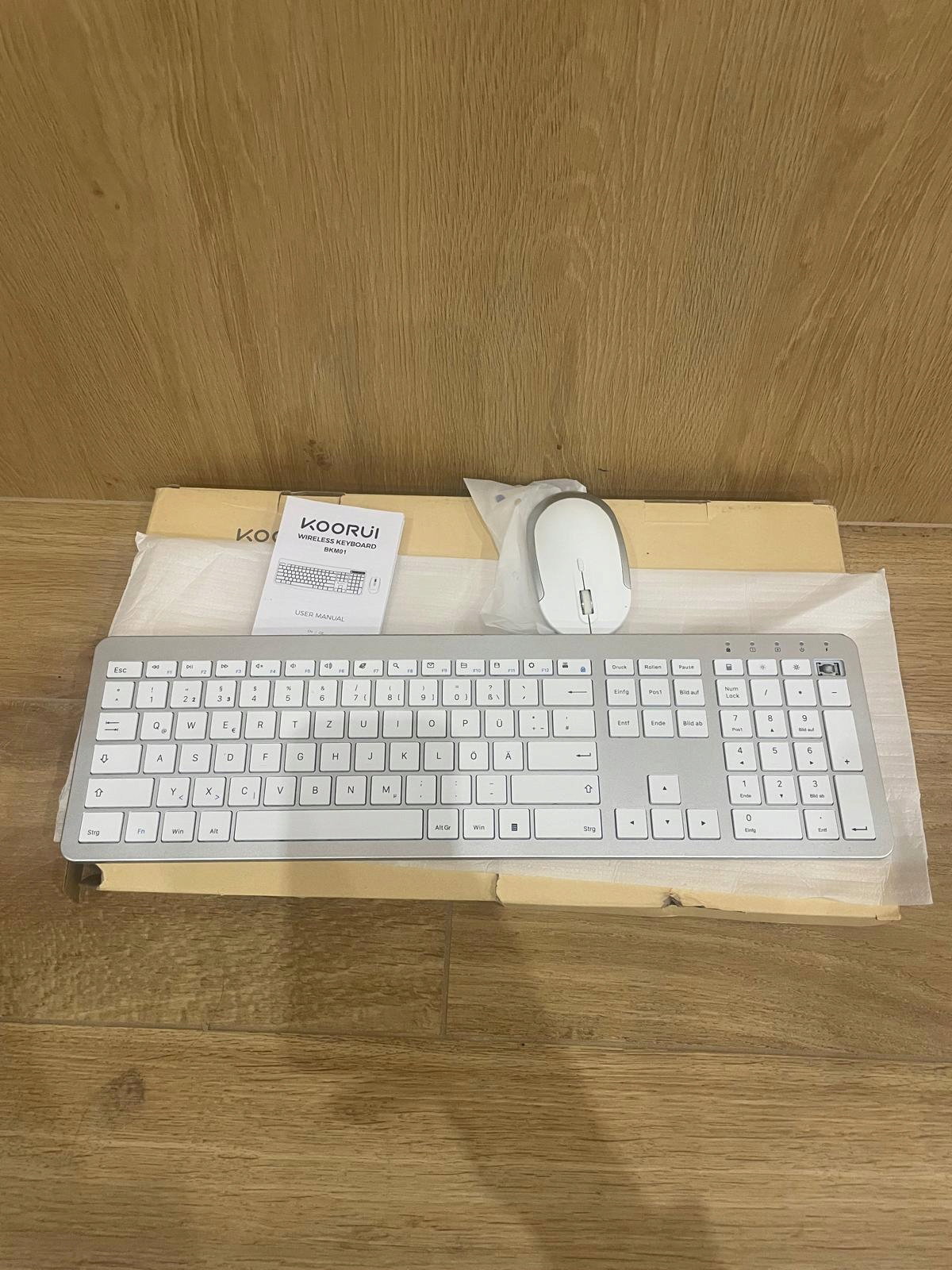 Seenda bezprzewodowy zestaw myszy i klawiatury z akumulatorem (kompaktowy rozmiar), ultracienki, cichy, biało-srebrny.