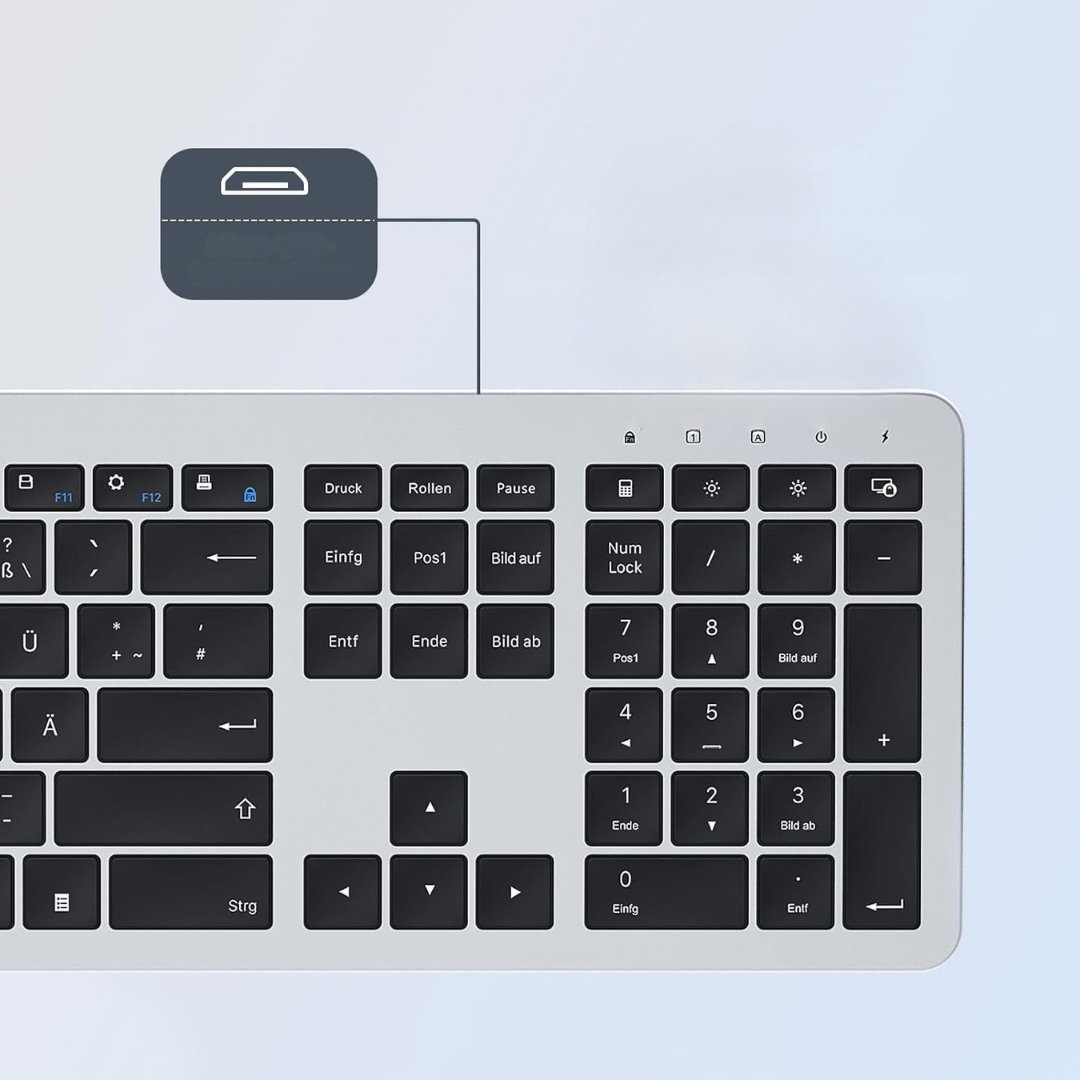 Wyposażony w silikonową osłonę przeciwkurzową zwiększa trwałość klawiatury i chroni ją przed zabrudzeniami, a niemiecki układ DE QWERTZ zapewnia komfort pisania zgodny z preferowanym standardem.