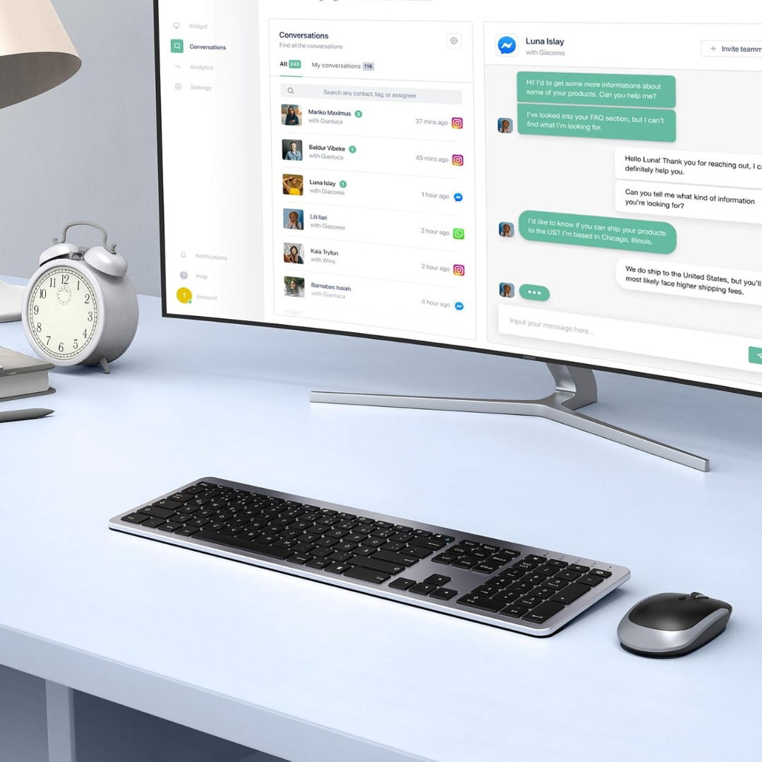 Smukła konstrukcja oraz bezprzewodowe połączenie sprzyjają utrzymaniu estetycznego i uporządkowanego stanowiska pracy bez nadmiaru kabli.