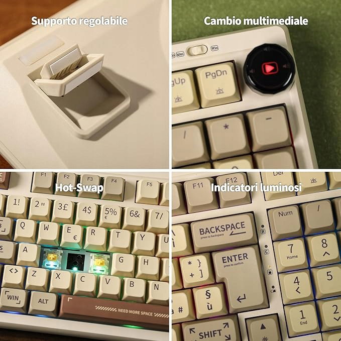 Epomaker RT100 to 97-klawiszowa klawiatura mechaniczna z numpadem i pokrętłem. Ergonomiczna konstrukcja z mocowaniem na uszczelkę sprawia, że jest to idealne akcesorium do Twojej konfiguracji. Bezprzewodowe połączenie Bluetooth 5.0 2.4G i przewodowe Type-C sprawiają, że jest to idealna klawiatura. Smart Mini TV z możliwością personalizacji wyświetlacza i stylistyka retro sprawiają, że klawiatura jest wyjątkowym dziełem sztuki na biurku. Epomaker RT100 ma diody LED skierowane na południe i jest kompatybilny z systemami Windows / MacOS.